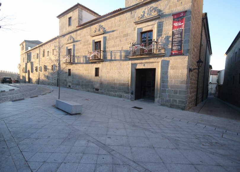We are walking around the old town of Avila looking at the old buildings and squares and after we have seen a lot of nice old buildings we arrive at a little square. On the square there are an old palace called the Palacio de Ochoa de Aguirre. There is a door into the palace and it is open so we have a little look inside.