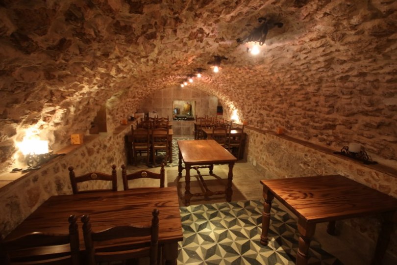 A restaurant in the basement