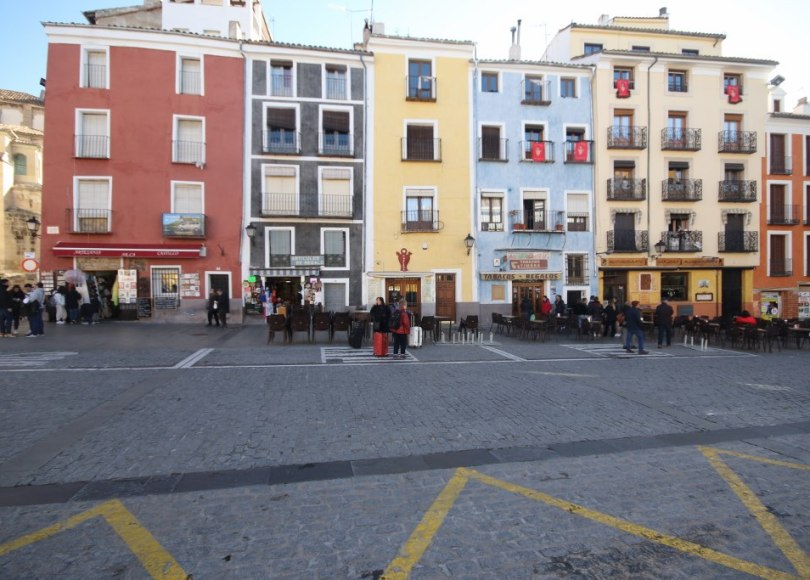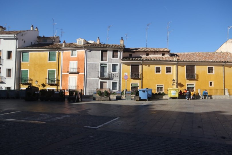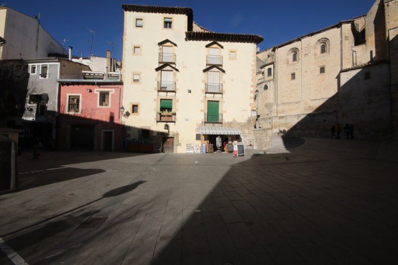We walk across the bridge while we take in the view of the hanging houses and the view of the valley. After getting across the valley we walk into the actual old town of Cuenca.