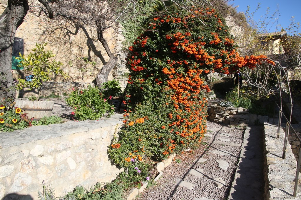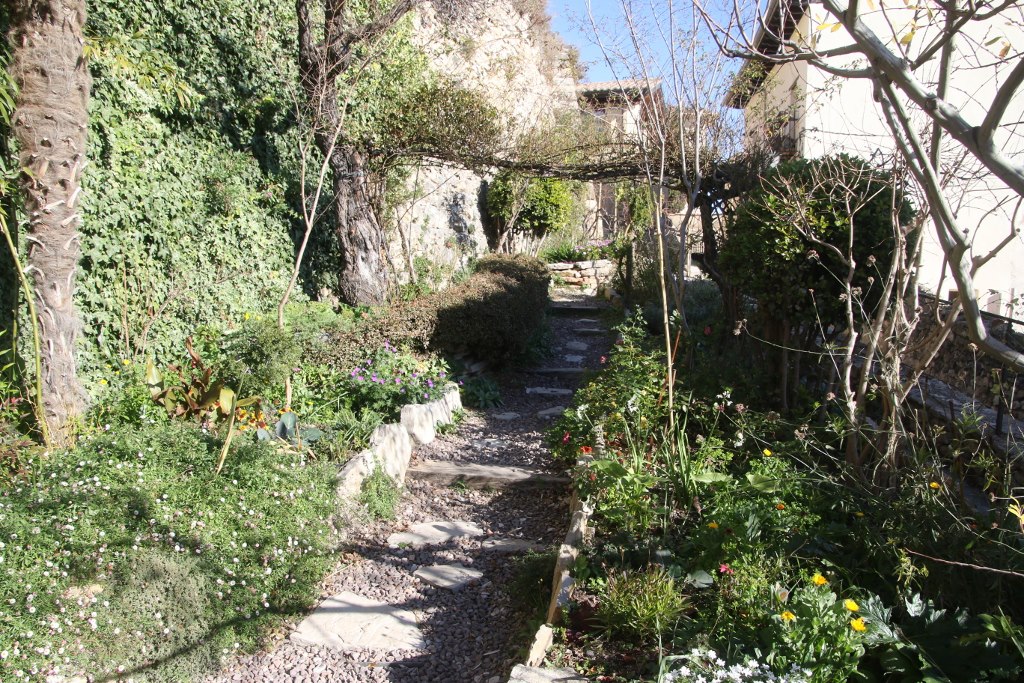 We walk down the hill and find a pretty big sign for the garden. It is a public garden so we don’t have to pay and entrance fee. And when we see the size of the garden we realize the sign is almost as big as the garden. It is a tiny garden in the old town – I guess the limited space inside the old town has ensured the locals haven’t used the limited number of building grounds to make a garden.