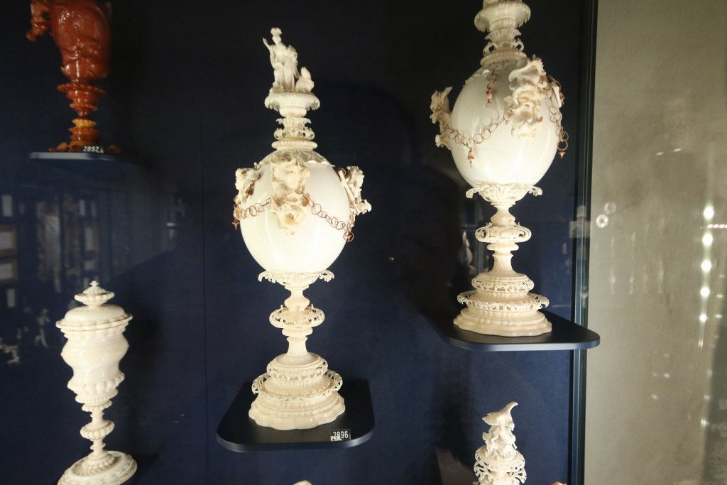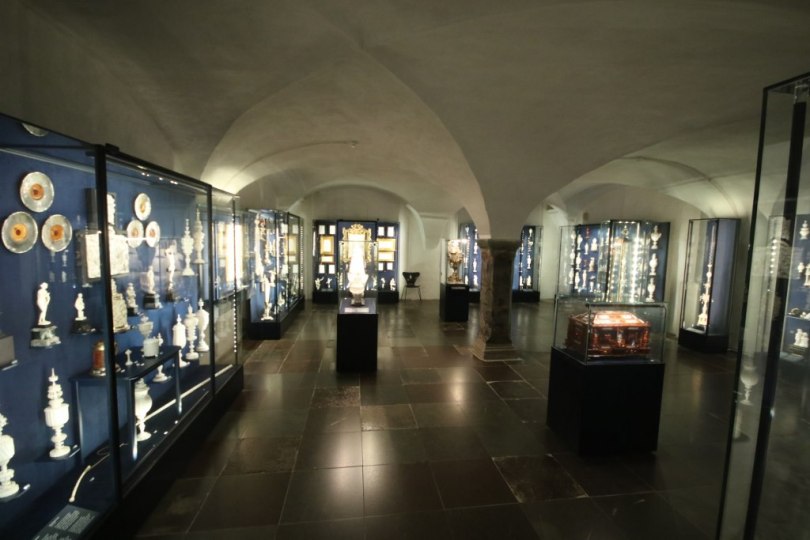 There are also a collection of small ivory items – part of the reason for the collection of ivory is the Danish king had the easiest access to ivory of all the European monarchs. When you hear about ivory you might think of the tusk of elephants – hence it is an item which comes from Africa and Asia where they have elephants. But you can actually also get ivory from walrus tusks – and since the Danish kings used to rule the north Atlantic area with Iceland, Greenland and Norway up until 1814 they did have the best access to walrus tusk of any monarchs.