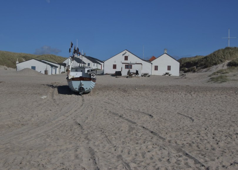 When the fishing industry changed around 1900 there were an increasing demand for having tools down close to the shore so the fishermen could actually do some work without having to transport everything back to the village every night. So they built a row of white houses between the sand dunes of Stenbjerg Landingplads. The houses is no longer in use but they have been left and are some pretty houses down at the shore which is interesting to have a quick look at before you head down and see the sandy beach.