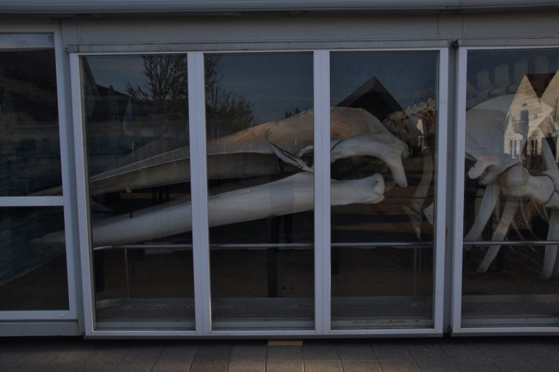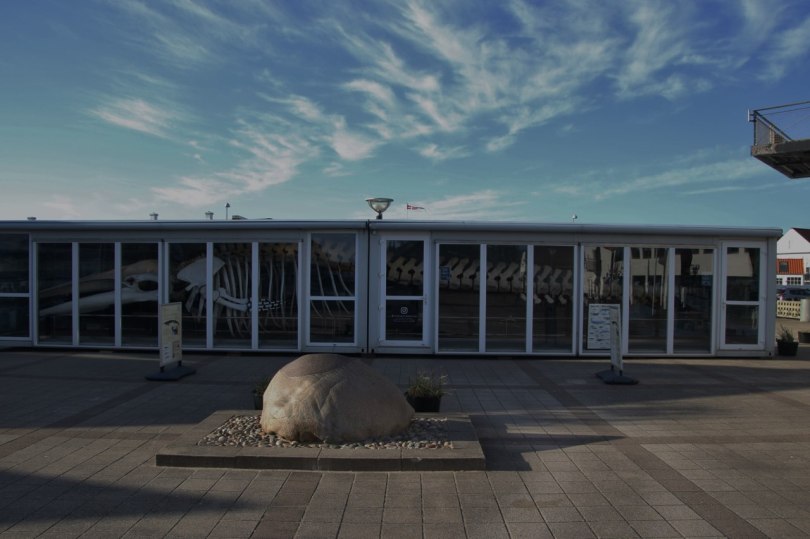 There are a few old houses down in the center which is nice looking. If you go to the main square you find one of the big attractions of the town – a large glass display which covers the bones of a dead whale which stranded on the beach around Blokhus and now it has returned to the village as a new tourist attraction.