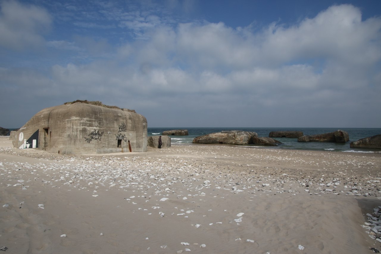 The German army builds a large number of bunkers along the entire European coast during World War II to create an Atlantic wall. Along the western coast of Jutland they also made thousands of concrete constructions along the coast of Denmark – approximately 8,000 in totals of which 2,000 were actual bunkers.