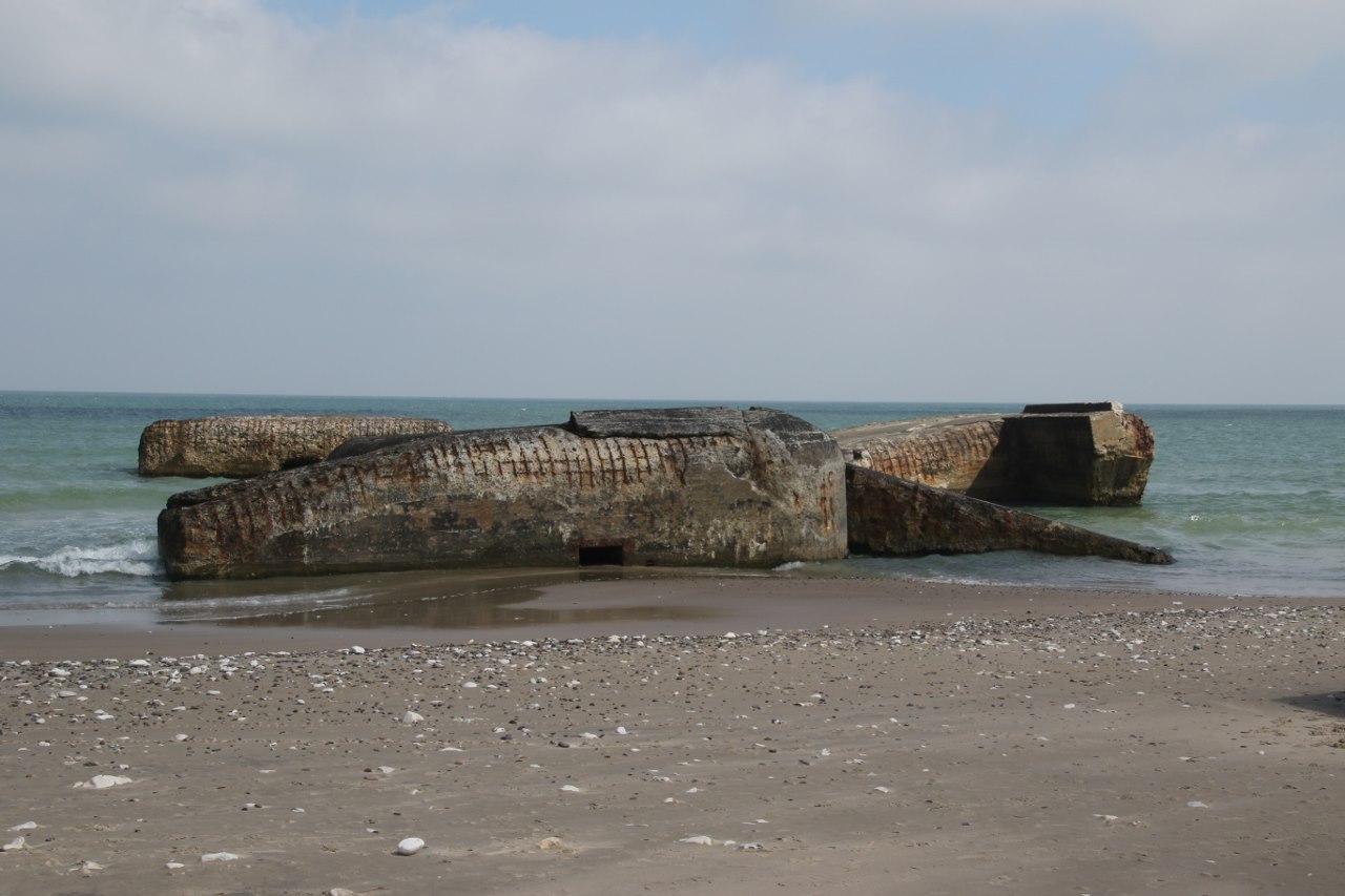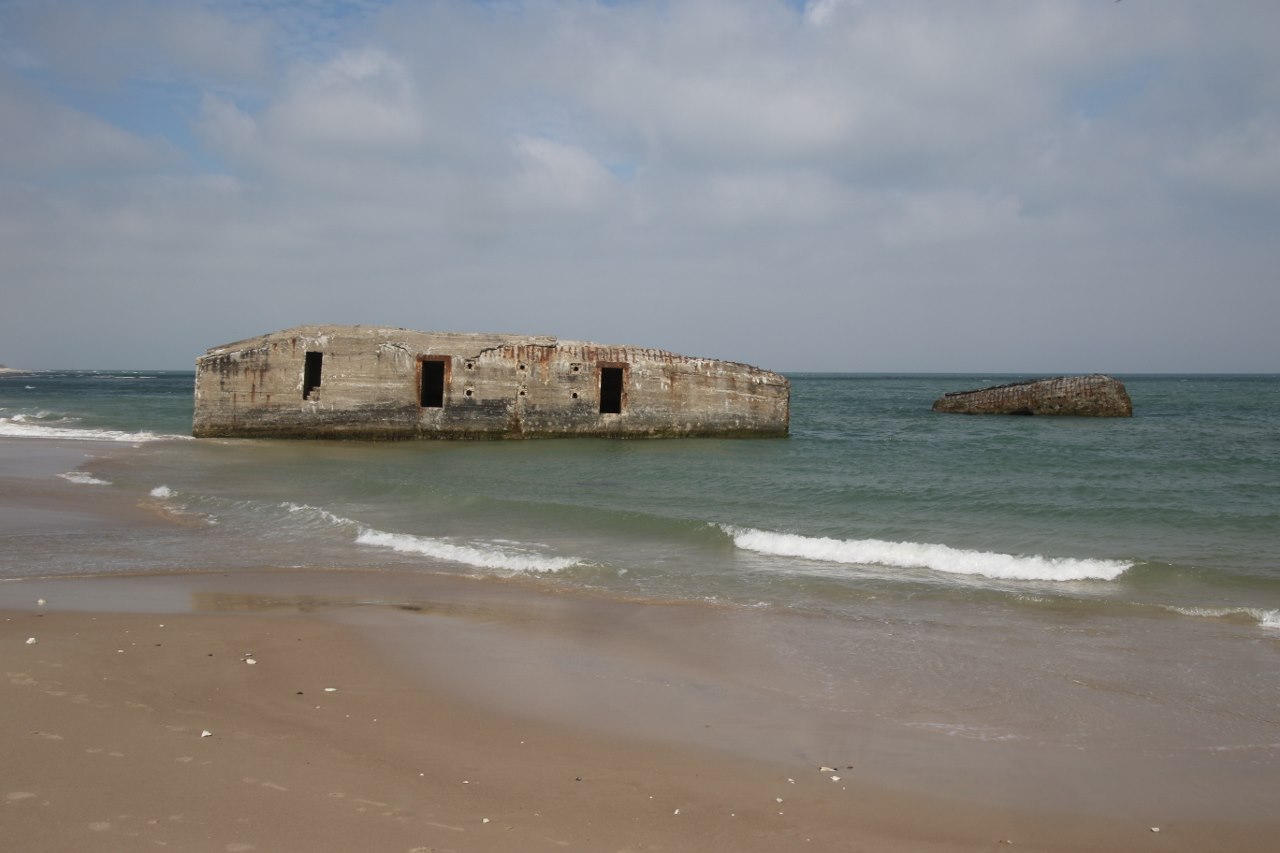 When you visit Vigsø you can just walk to the beach and see a lot of the old bunkers. The coast here has receded around 140 meters during the almost 80 years which has passed since the construction of the bunkers. So today most of the bunkers are located out in the waters and the rough sea around here with many large autumn and winter storms has taken their toll on the bunkers.