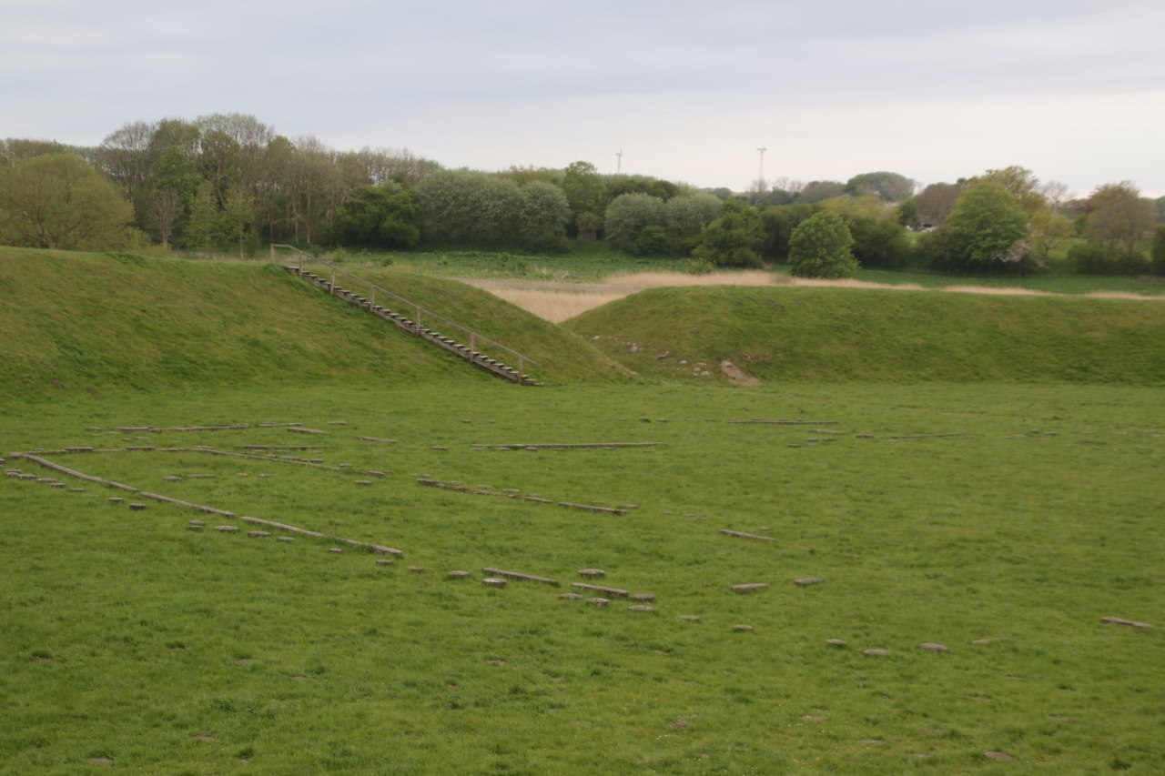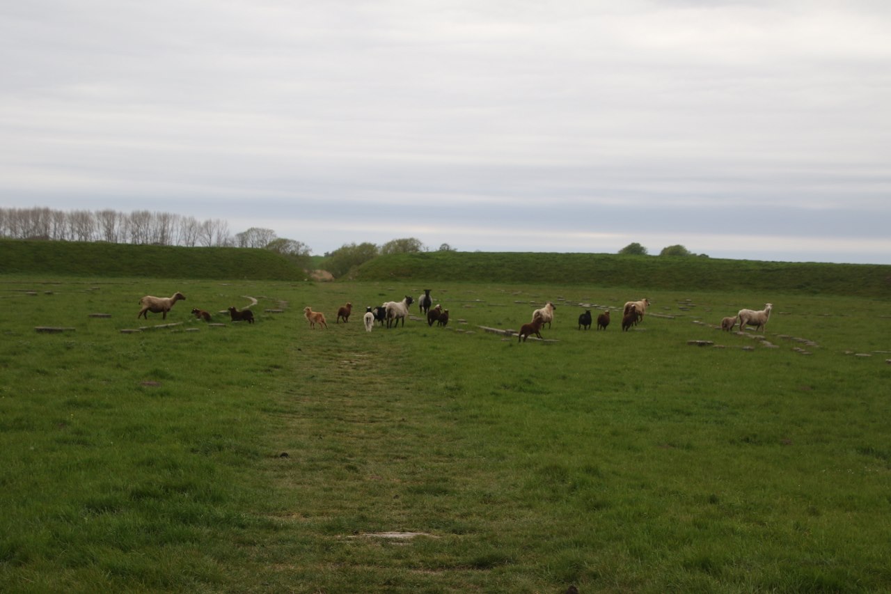 The fortress is partly reconstructed and there is a pretty big wall which is much higher than what we have seen in other fortresses like Fyrkat and Aggersborg. Inside the fortress the grass area was dominated by a group of sheep’s who seem happy to eat the fresh grass and couldn’t care less about the history of the area.