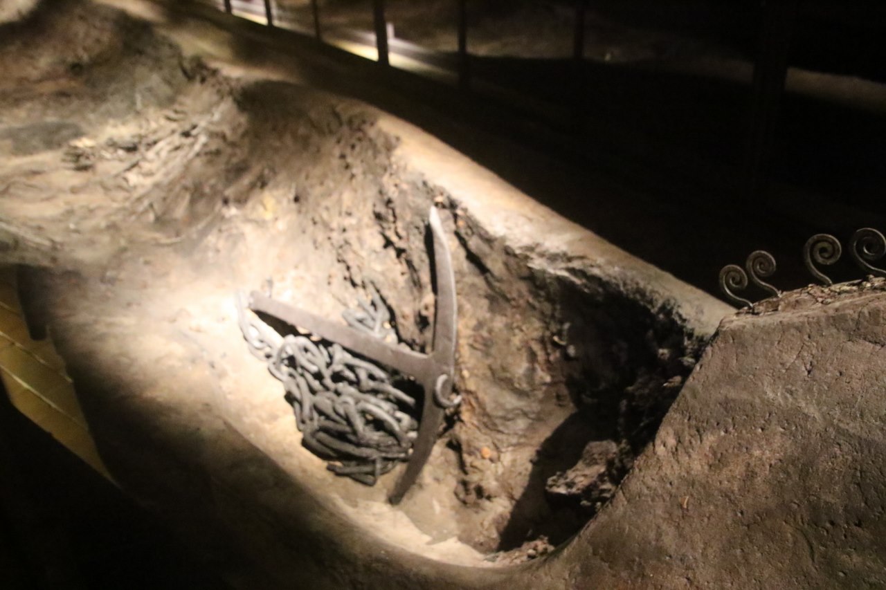 The main attraction is naturally the ship. The ship has actually never been moved from the burial mount – instead they have made sure the area is not flooded anymore and the wood has been preserved so it can stay here inside the burial mount. This Viking ship is actually the only Viking ship which is still at the location the Vikings left it a millennium ago – all other Viking ships you can go and visit in Denmark or Norway have been moved from where they were found to the Viking Ship museum in Roskilde or the museum in Oslo.