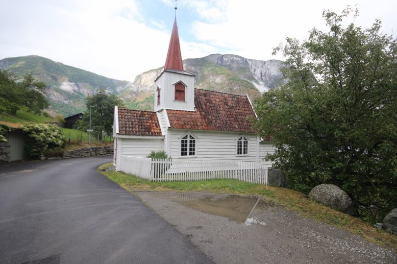 We drove out to the small village of Undredal where the church was supposed to be. The village is pretty small with some fairly narrow streets so I guess they don’t want too many foreigners going to the church in search of parking right next to the church. Instead we had to park at a public parking down close to the fjord in the village.