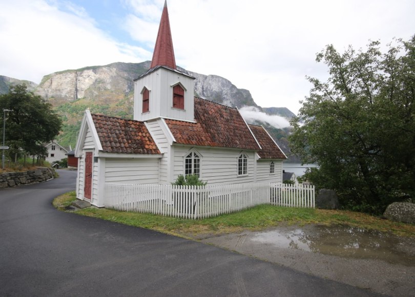We drove out to the small village of Undredal where the church was supposed to be. The village is pretty small with some fairly narrow streets so I guess they don’t want too many foreigners going to the church in search of parking right next to the church. Instead we had to park at a public parking down close to the fjord in the village.