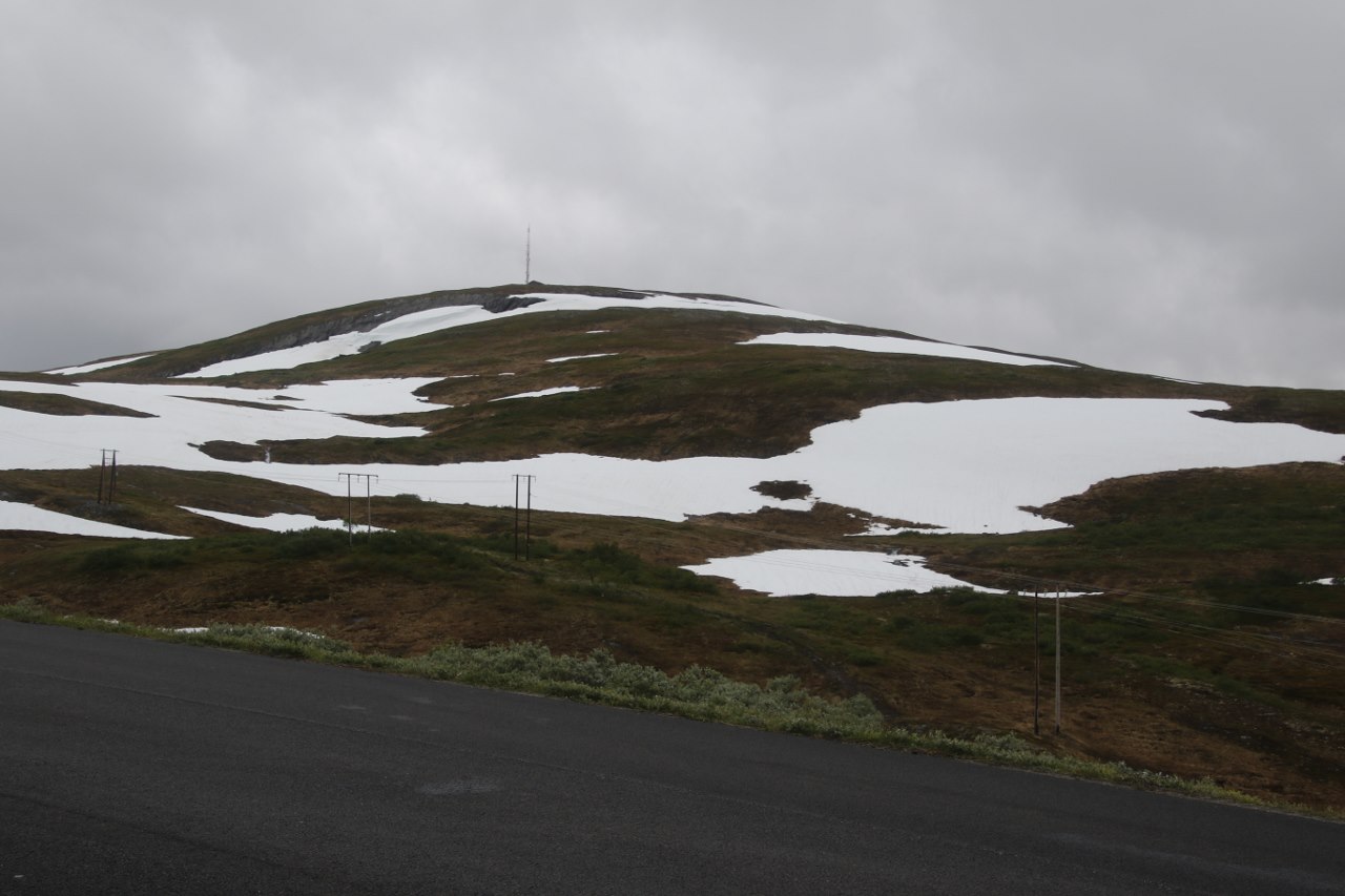 We finally reach the top of the mountain. And in typical Norwegian style they have decided to put a tunnel through the top bit of the mountain so we don’t get to the top instead we drive straight under the top. I am not sure why they put a fairly short tunnel here at the top considering the road had been steep and twisted on the way to the tunnel. The only reason we could think of was to reduce the risk of the road being covered by snow – but I think lower parts of the road would be impassable as well.