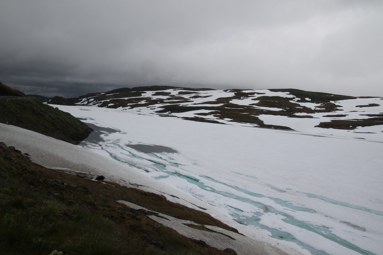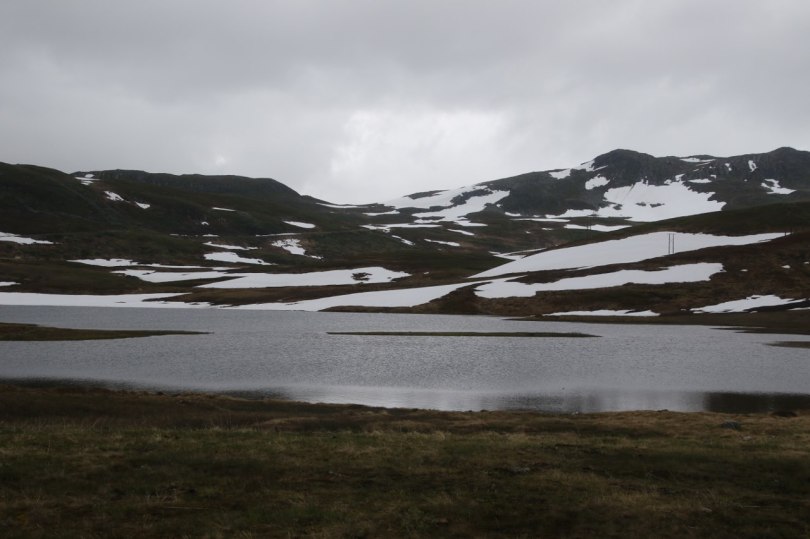 Surprisingly there are a lot of small cabins up in the area – the Norwegians like to have a hytte (the Norwegian name of small cabin) and it seems like this area in the mountain is pretty popular despite the cold climate and the snow just outside the door in the middle of the summer. The area is pretty but I do wonder what people will do for a longer period of time up here it seems just a tad too cold to be comfortable to go on longer hikes in the area and swimming is clearly out of the question considering there is still ice and snow on some of the lakes.