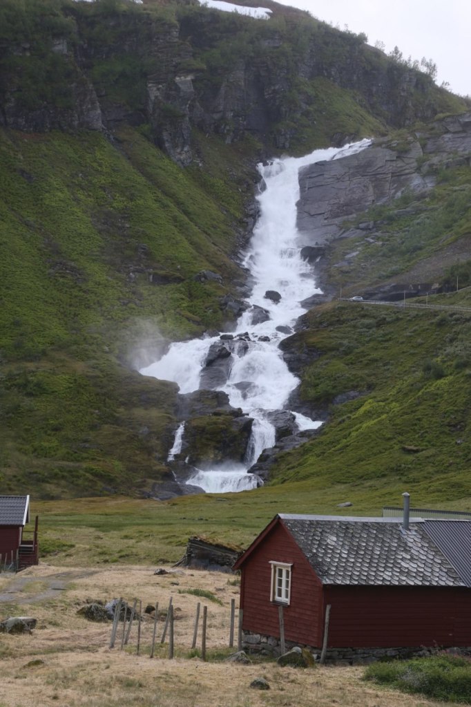 We drive from the ferry port at the edge of Sognefjorden to our hotel which is a bit away from the fjord in a valley called Myrkdalen. To reach the valley we have to cross a fairly high mountain which starts at the edge of the fjord and end at around 1,000 meters of elevation at the top.