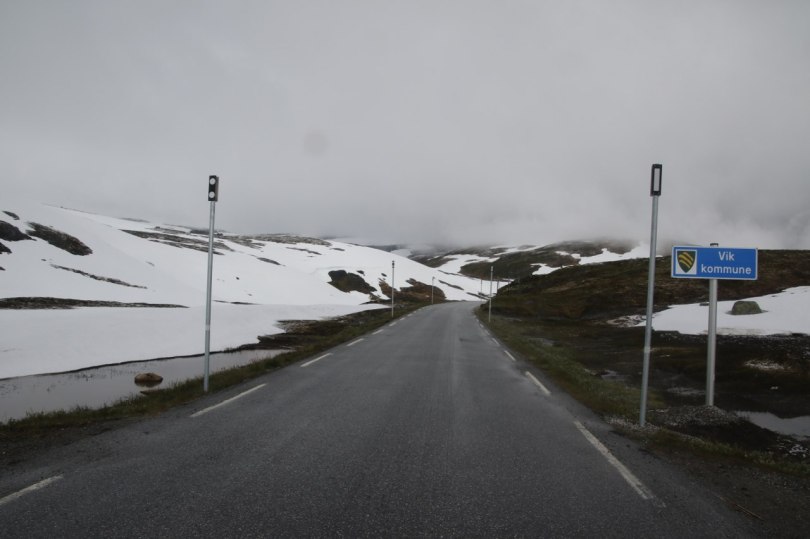We get up in the morning – and it is a dull morning with a bit of rain and the temperature is pretty low. Usually it wouldn’t be a big problem with the cold weather – it is just a question of putting on the jumper which seems to be in frequent use in Norway. But today we have to head across the same mountain we went across yesterday. When we reached the top yesterday the temperature on the top was around 10 so there was no risk of ice on the road.