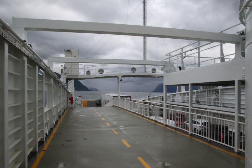 And once again we don’t have to wait too long for the ferry – it comes quickly and we drive onboard the ferry and get ready to sail across the fjord. It is only a short sail across the fjord and it is enjoyable to stay on the top deck from where there are great views of the fjord.