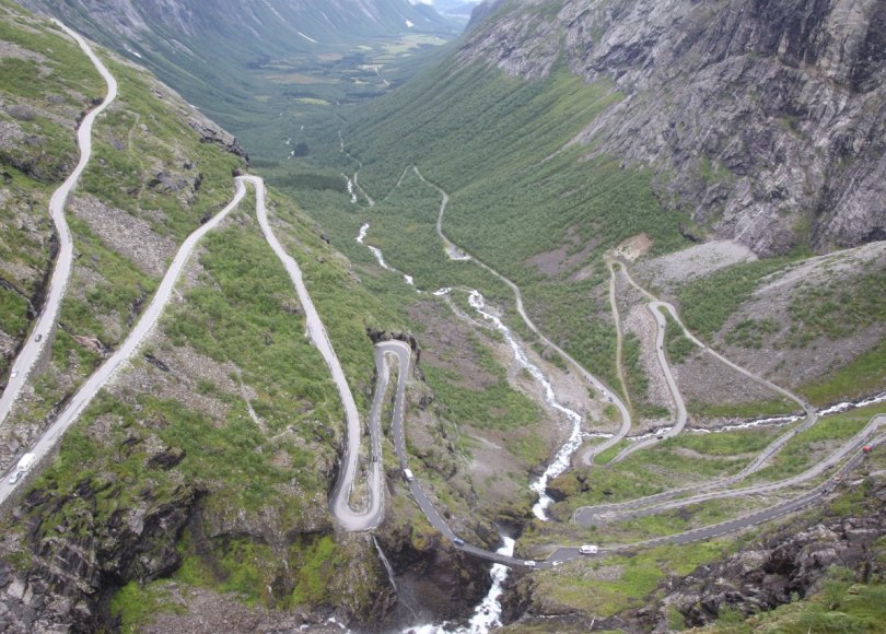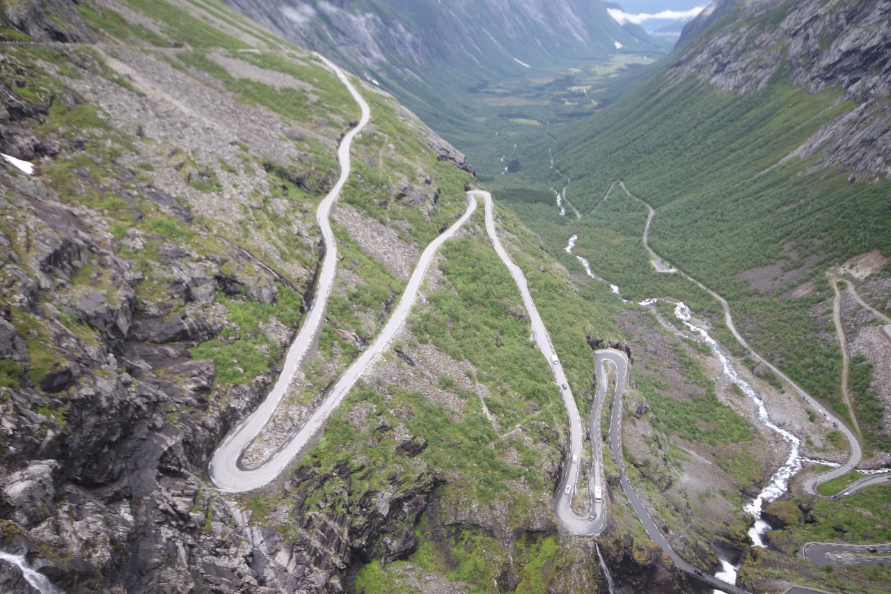 The hairpin is supposed to make the travel on this road the most dramatic of the Norwegian mountain roads – but I am not sure I agree with this. I find a road like the old road across Gaularfjellet is at least as interesting when it comes to hairpin. And I find the road across Gaularfjellet is very steep and narrow making it more dramatic than Trollstigen.