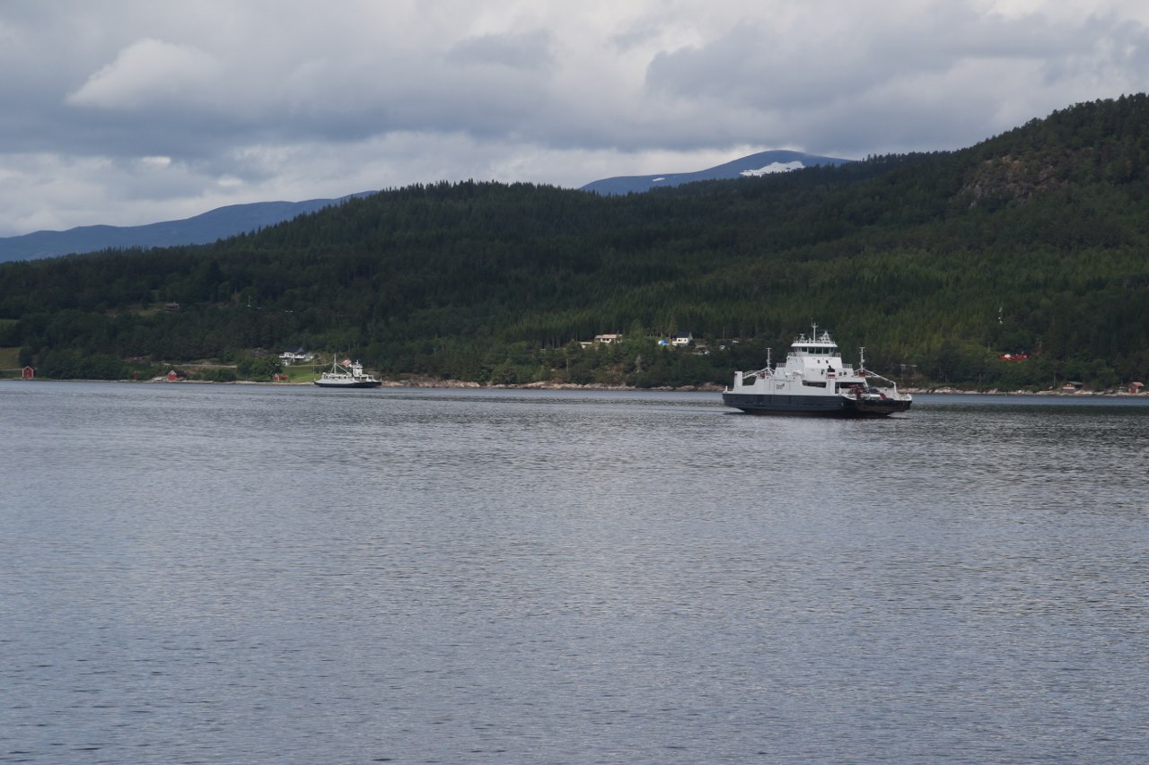 It is high season but the ferry is pretty empty so there is no need to wait in line at the port before entering a ferry. It is only about ten minutes crossing the fjord.