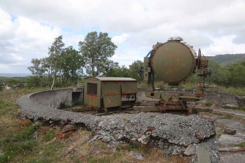 We go and visit a stronghold along the road. We park the car and from here it is a short walk up the hill to the top where there are some remains of the old stronghold. There are a couple of bunkers used by the soldiers and a gun standing on top of the hill from where it could shoot out on any approaching force below. There is also a giant searchlight which must have been used during the night to spot approaching boats.