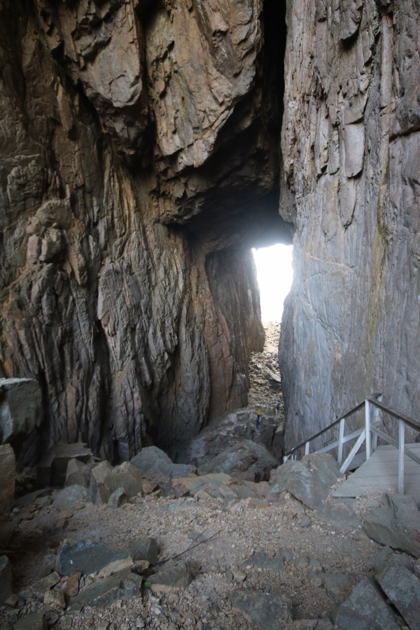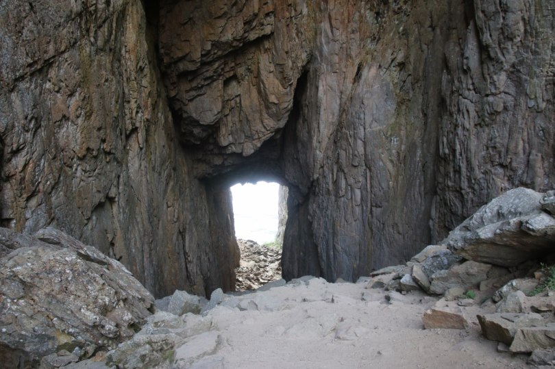 The legendary story is quite fun – unfortunately the science have a tendency to try to destroy all old legends. They claim the current tunnel was created many years ago when the water level were much higher than it is today. Back then the tunnel were actually two sea caves. The two caves were slowly expanded by the waves which eroded the cliffs away. After many years the two caves finally met in the middle of the mountain and the current tunnel was created. Later the sea level went down and the tunnel was left high up in the mountain.
