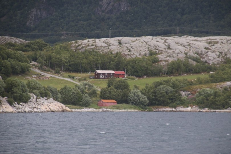 The ferry is one more time sailing between tiny towns which you probably would miss if you were driving on another road where you didn’t have to stop to wait for the ferry. Fortunately we do have to stop so we can stretch our legs for a bit while taking a couple of photos of the fjord.