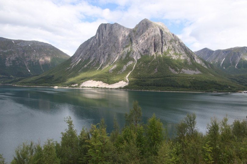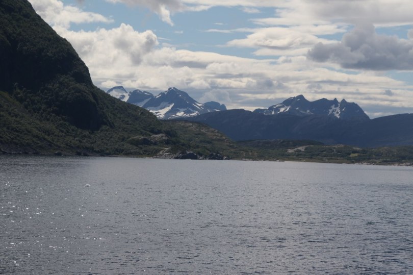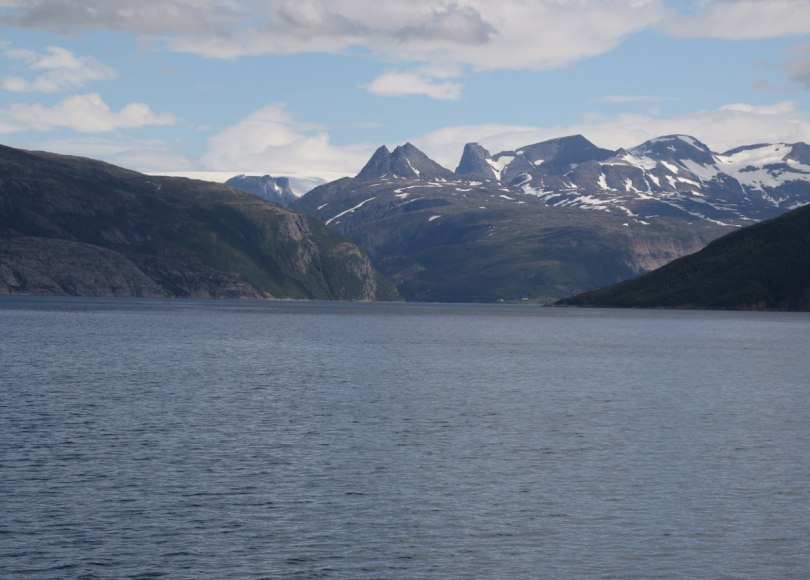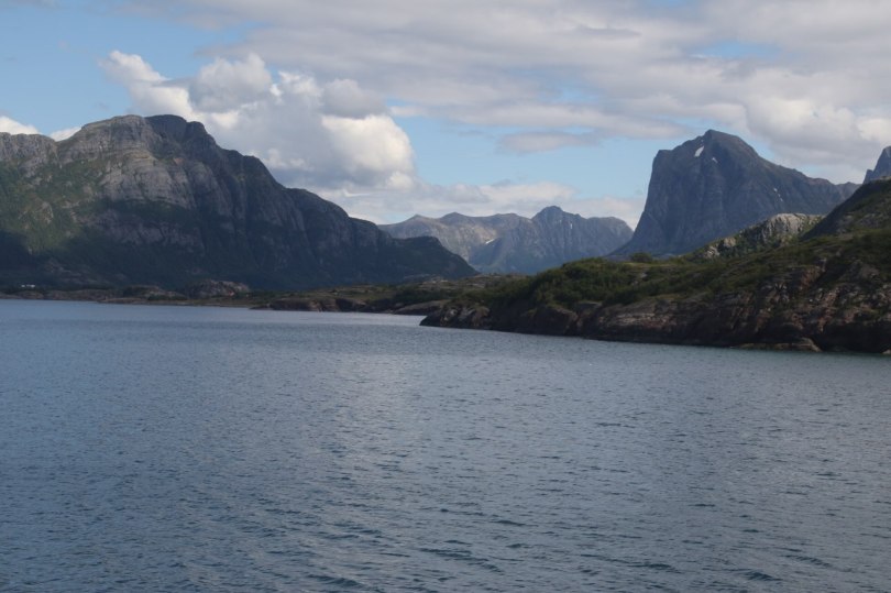 We drive along the shore of mainland Norway enjoying the dramatic view of the landscape along the less travelled tourist road 17. There are a few other tourist along the way – and actually it seems a bit like the traffic has been picking up from what we have been used to so far – but that’s not really say a lot since even during the peak season of the year the area really doesn’t feel crowded.