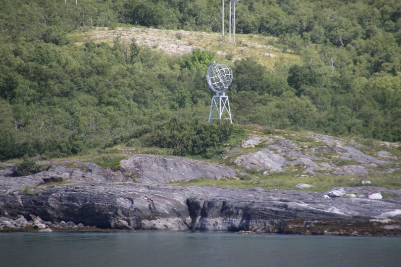 We continue sailing and after about 20 minutes or so the captain makes an announcement. We will be crossing the Arctic Circle shortly and to the right of us we will be able to see a monument for the Arctic Circle. We sail across the Arctic Circle with the passengers taking photos of the monument to mark the occasion – I guess for most this is the first time they sail across the Arctic Circle. As far as I can tell there is no ceremony for the crossing. Nobody is getting a baptism like the Neptunian baptism which is traditional for people sailing across the equator for the first time – though I never got this either.