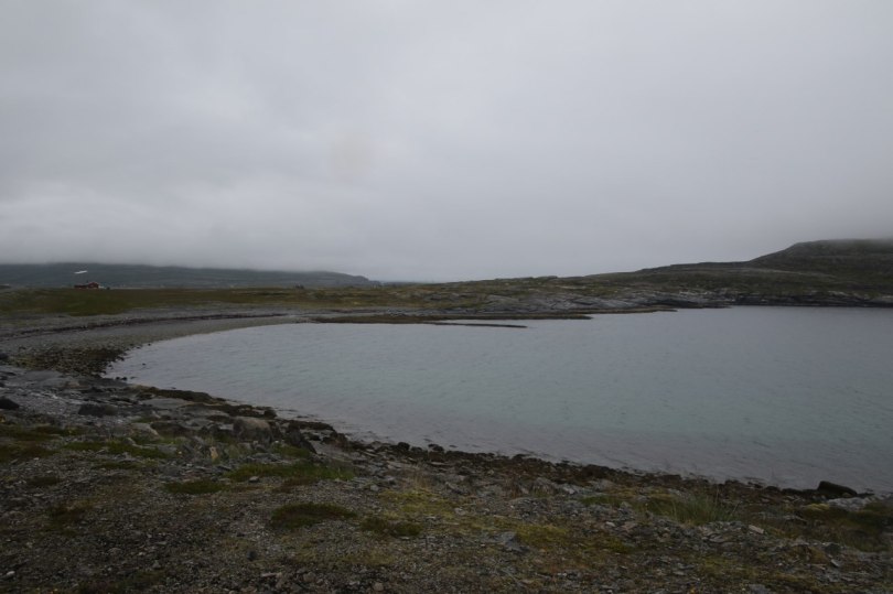 We drive up there from Alta and enjoy the drive – through the weather is still a bit questionable. So the views along the road aren’t as good as we could have hoped for – but there are some views of the coastline along the way and we do see a bit of the shore now and again.