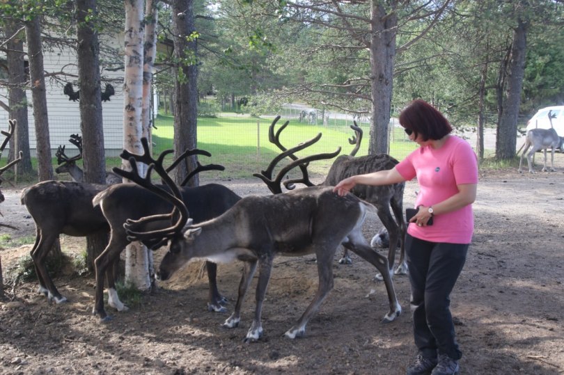 We were only supposed to stay for a couple of minutes with the reindeers but it is fun to have them come close like this so we end up spending a bit of time enjoying the local farm animals.