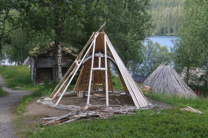 This church town is very different from the famous one at Gammelstad near Luleå we had visited the day before. Back in Gammelstad the houses was classic Swedish red wooden houses – here in Fatomakke the majority of the buildings is looking more like a tent. But instead of using canvas they have built the small huts by using the birch wood which they could find in the forest around the area.
