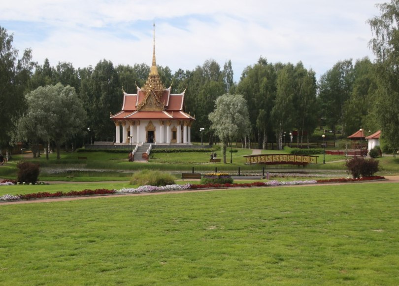 We have a long day of driving today so we don’t have a lot of time for sightseeing. But as we drive from the inland road in Sweden to the coastal road we see some signs for a Thai temple area – and we drive almost right by it. After having seen all the signs of this Thai temple we decide we need to figure out what a Thai temple is doing in northern Sweden – it was exactly what we expected to see during the drive.