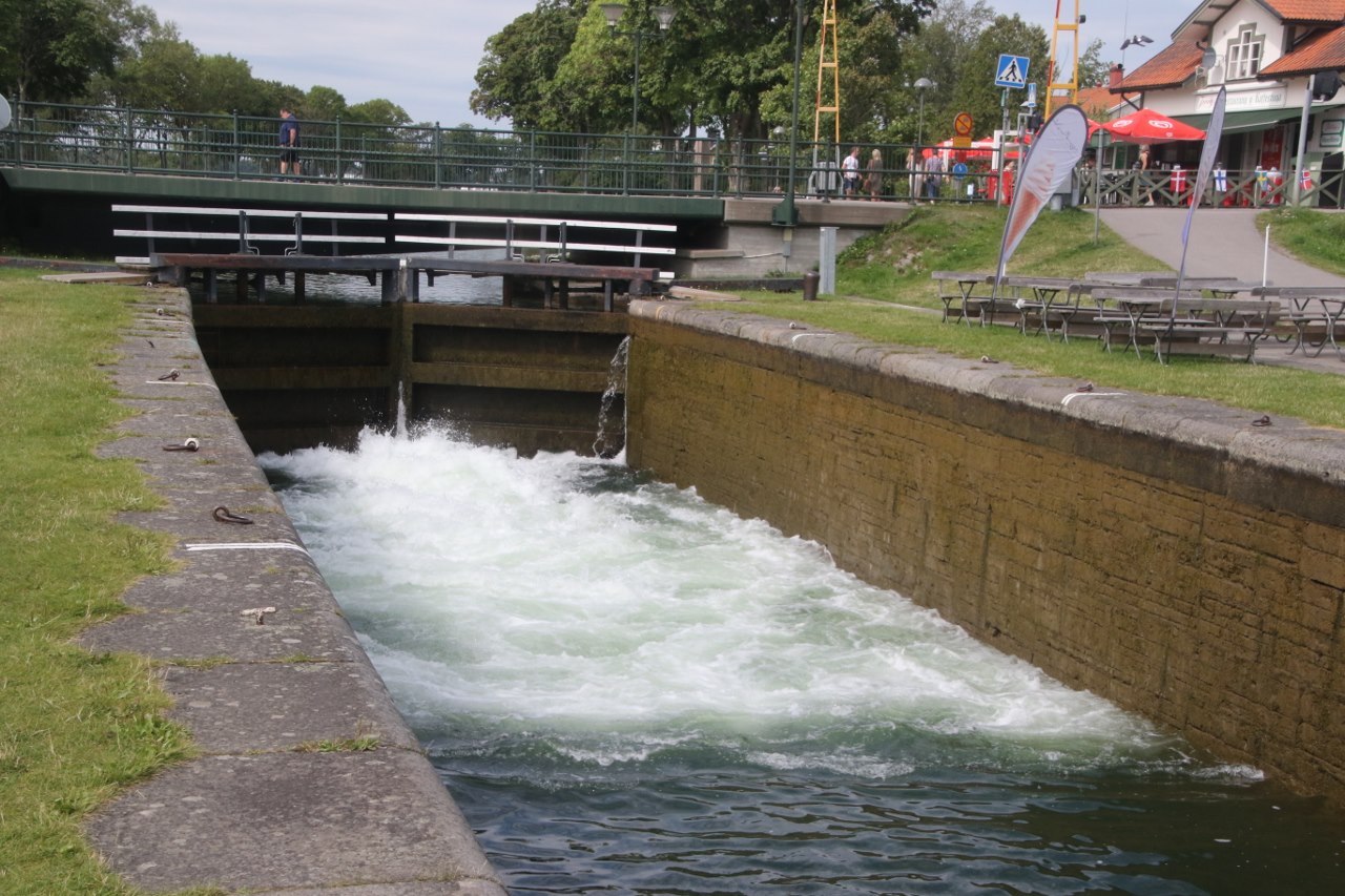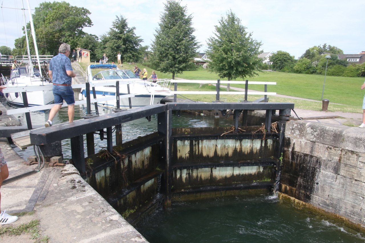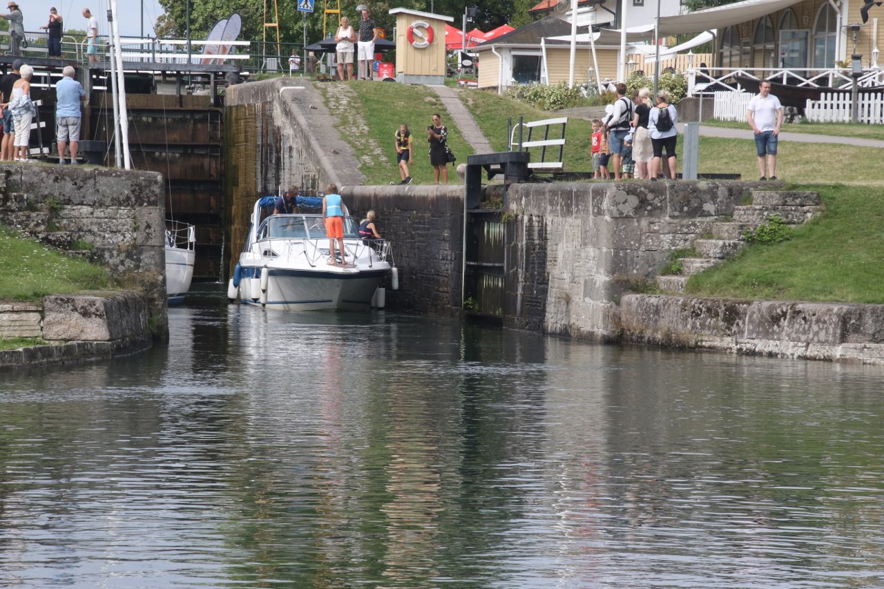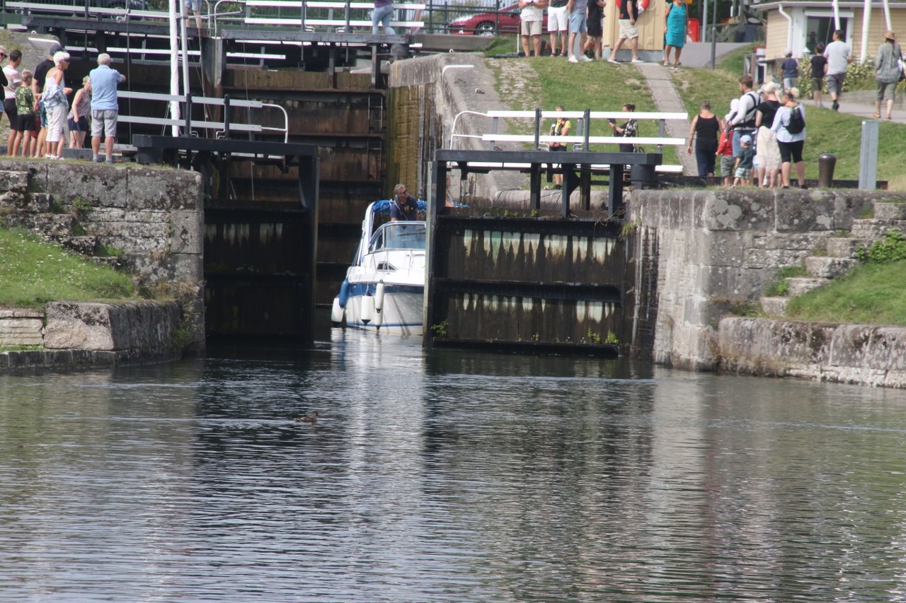 The locks will take the boats up or down 19 meters through a series of locks and if you come during the summer the area is pretty lively with many visitors – I guess many come for the excitement of seeing a boat or two going through the locks. We didn’t have to wait long before a couple of boats were getting ready to navigate down the canal and go down through the locks. We stay for a while watching the boats going through the lock. It is pretty interesting to stay and see the boats passing the locks since I haven’t spent any significant amount of time near a lock for many years.