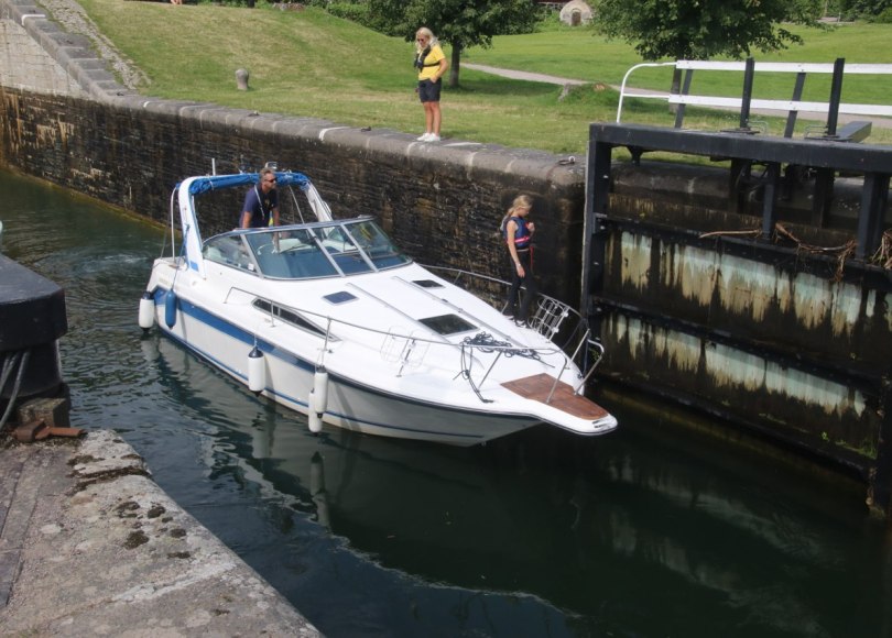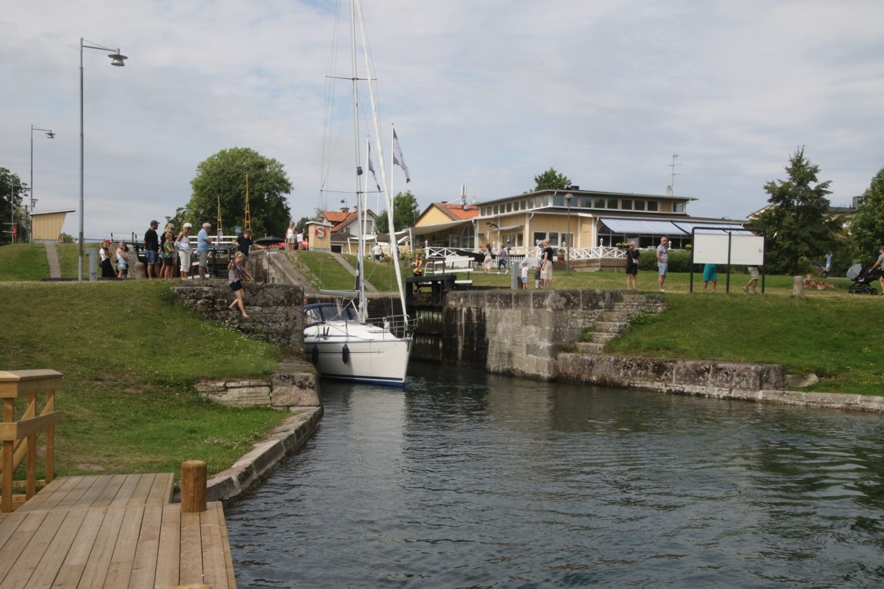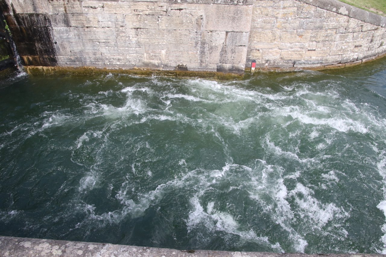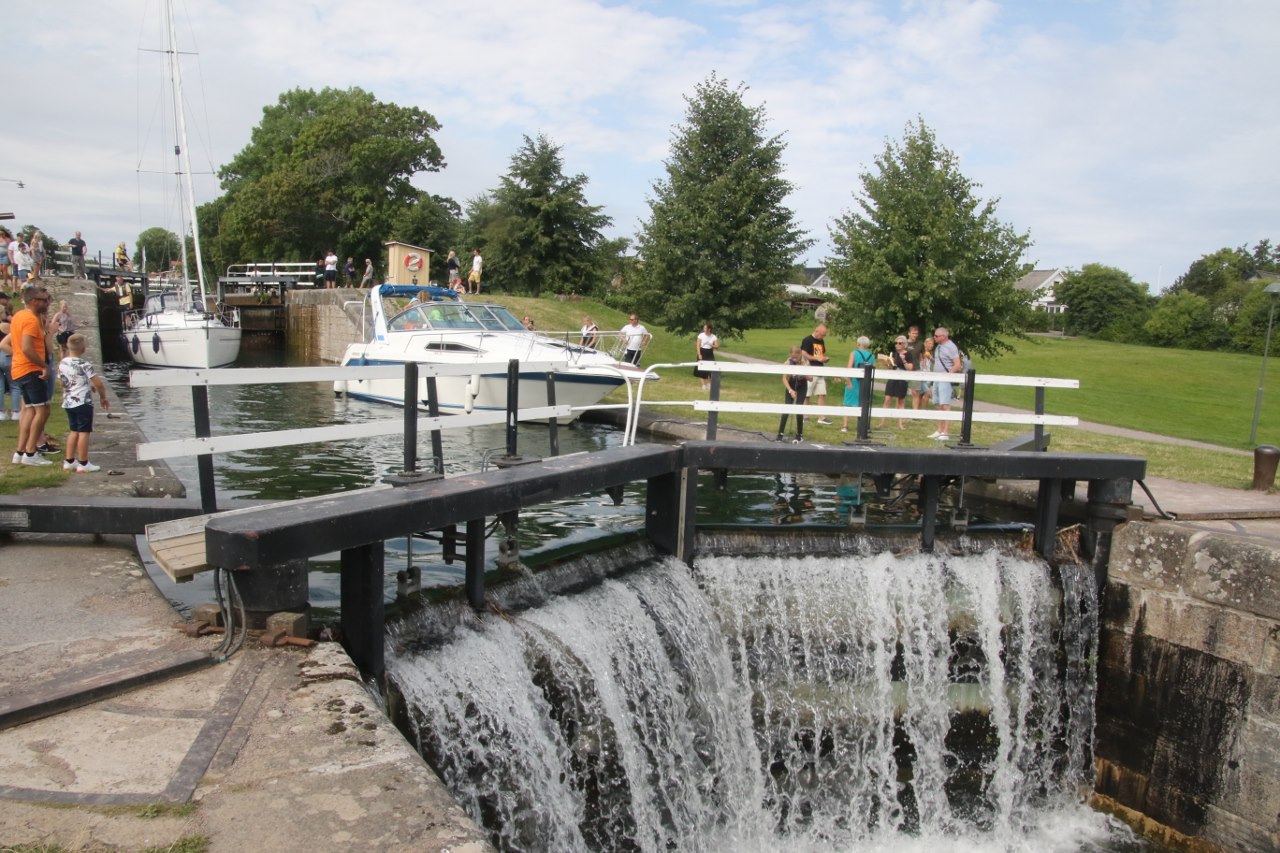 The locks will take the boats up or down 19 meters through a series of locks and if you come during the summer the area is pretty lively with many visitors – I guess many come for the excitement of seeing a boat or two going through the locks. We didn’t have to wait long before a couple of boats were getting ready to navigate down the canal and go down through the locks. We stay for a while watching the boats going through the lock. It is pretty interesting to stay and see the boats passing the locks since I haven’t spent any significant amount of time near a lock for many years.