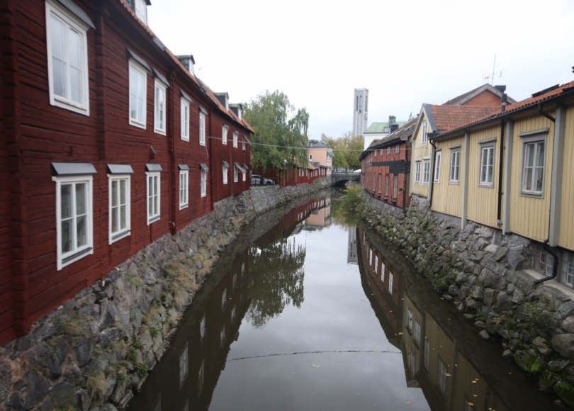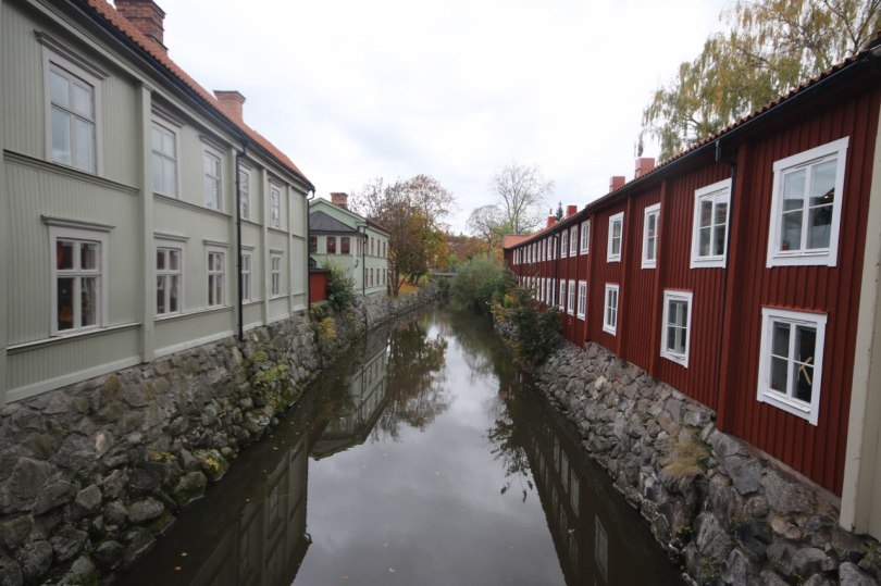 We drive from the hotel at the outskirt of Våsteräs to the center of town to have a little walk around the town in the morning. The town center is fairly small but there are some pretty parts down at a small canal system which runs all the way through the old town. There are a few wooden houses down at the canals and an interesting old building which dates back to 1891. Back them it was a very modern power plant using the water to provide electricity to the local area. It is actually still in use making it the oldest such power plant still in operation in Sweden.