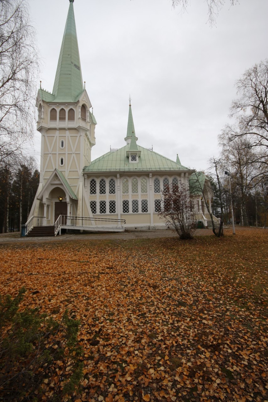Across the street from street from the museum we see the large church of Jokkmokk. I guess the town is pretty small so the interesting buildings aren’t far apart. The church is a wooden construction which looks very different from all other churches we have seen in Sweden. It is located on a large plot of land with a few trees. The setting is quite pretty with all the fallen leaves out in front of the church and the naked trees making it possible to see the church from a bit of distance and get a decent picture of it. Unfortunately the church is locked so we have to settle with a little walk around the church before we head back to the parking lot behind the museum.