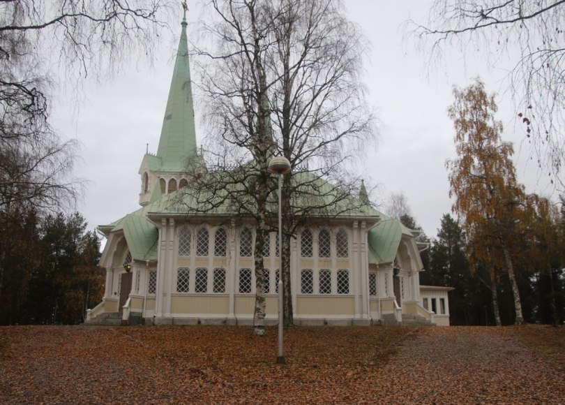 Across the street from street from the museum we see the large church of Jokkmokk. I guess the town is pretty small so the interesting buildings aren’t far apart. The church is a wooden construction which looks very different from all other churches we have seen in Sweden. It is located on a large plot of land with a few trees. The setting is quite pretty with all the fallen leaves out in front of the church and the naked trees making it possible to see the church from a bit of distance and get a decent picture of it. Unfortunately the church is locked so we have to settle with a little walk around the church before we head back to the parking lot behind the museum.