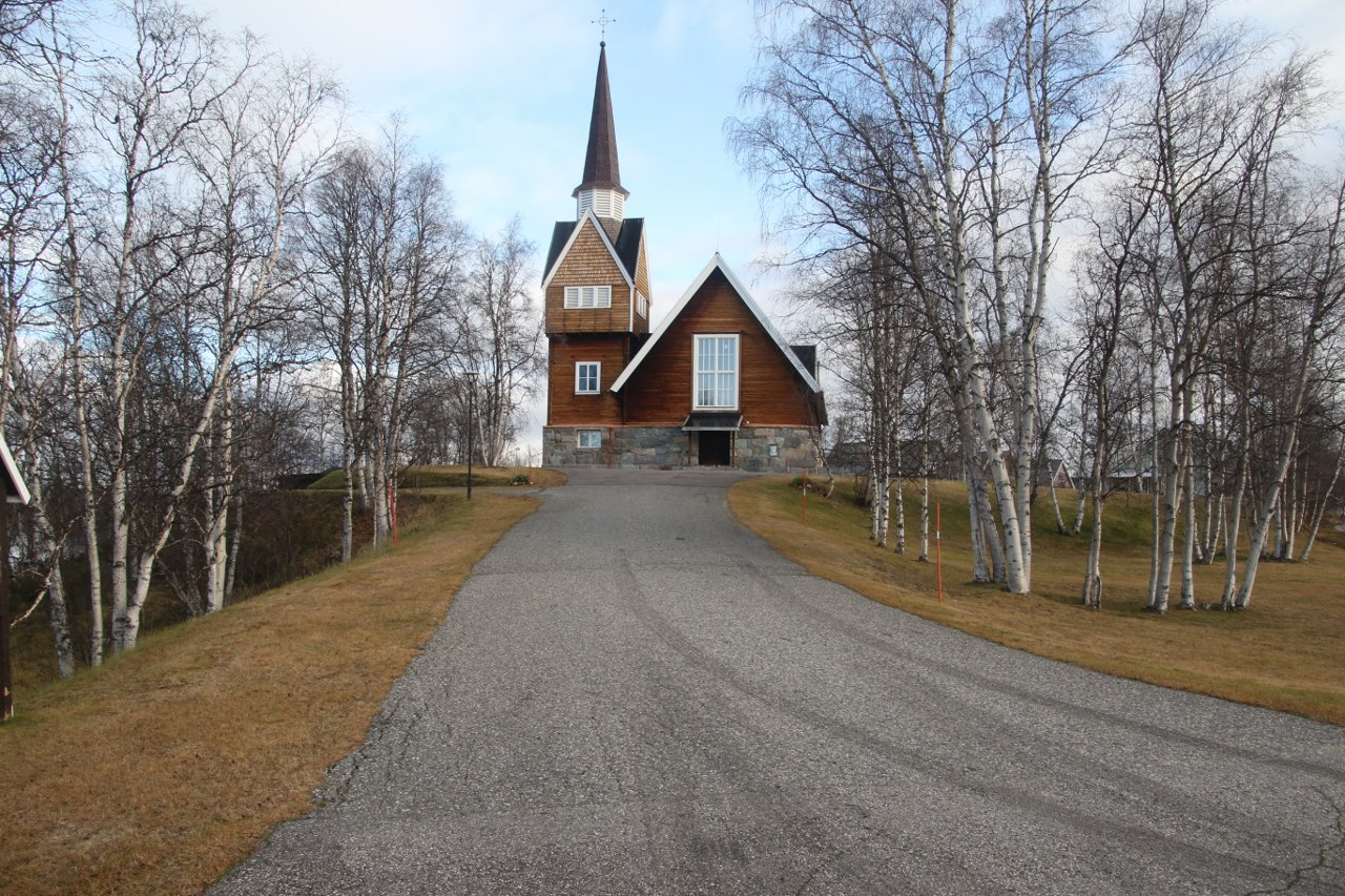 When we get back to Sweden we stop at a little church next to the bridge. The church’s has a lovely setting right down at the river inside a little wooden area. The church is the northern most church in Sweden and it is a traditional wooden church. We walk along the little road up to the church – the road is lined by birch trees on both sides. The birch tree seems to be the most common tree up here – I guess it is one of the few trees which can handle the harsh climate with arctic winters and then the midnight sun during the summer.