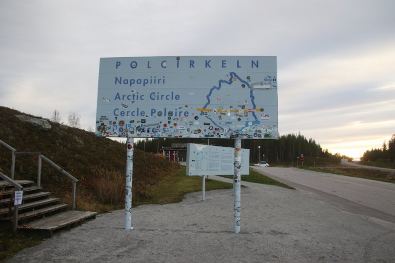 We enjoy the view of the lake and the information of the Arctic Circle and then we continue the drive south of the circle so it will be no Arctic night for us this time around.