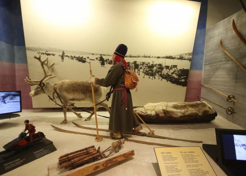 Another section is dedicated to the Sami traditional life as reindeer herders telling the story of how they move across the landscape with their animals searching for the best pastures depending on the season. Moving across a landscape with no roads and just using the reindeers as the only mean of moving the goods the Sami needed at their next camp.