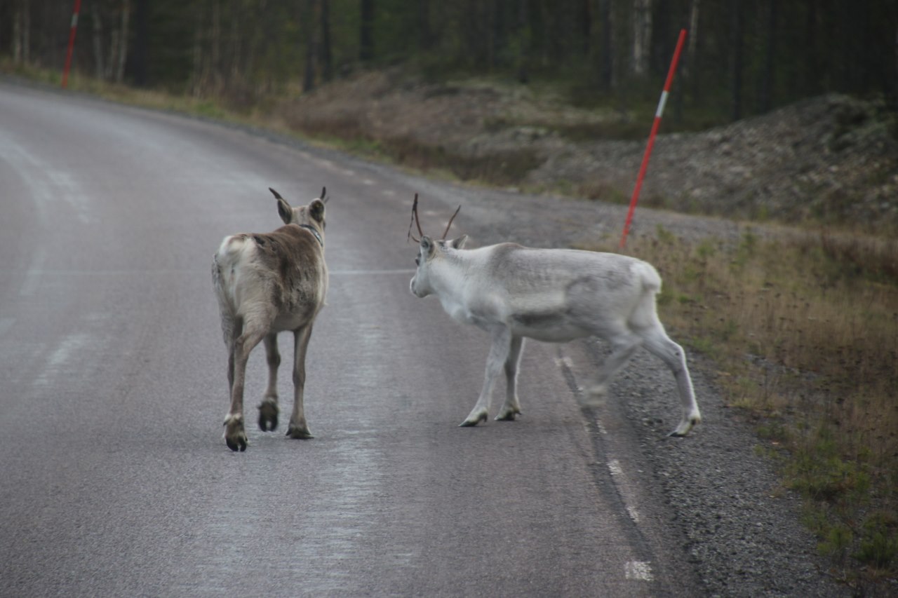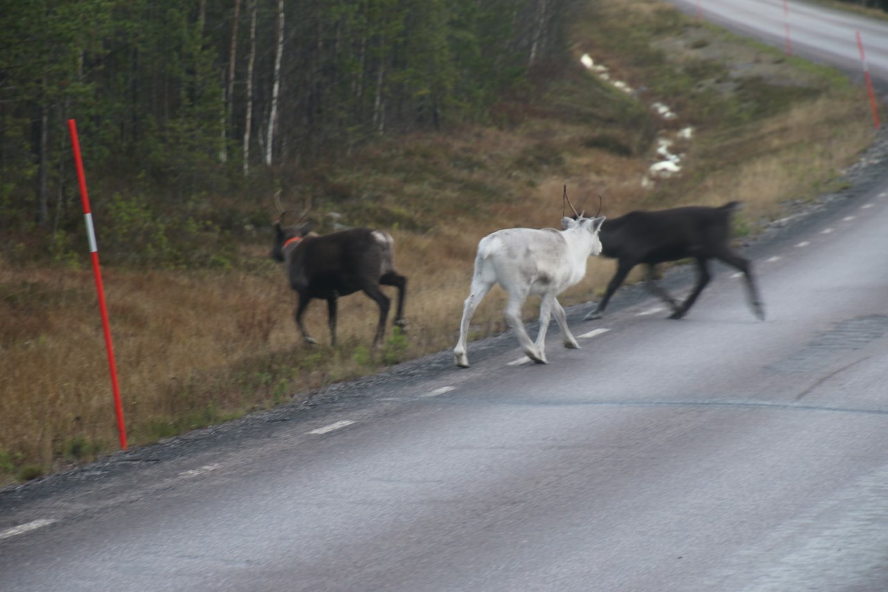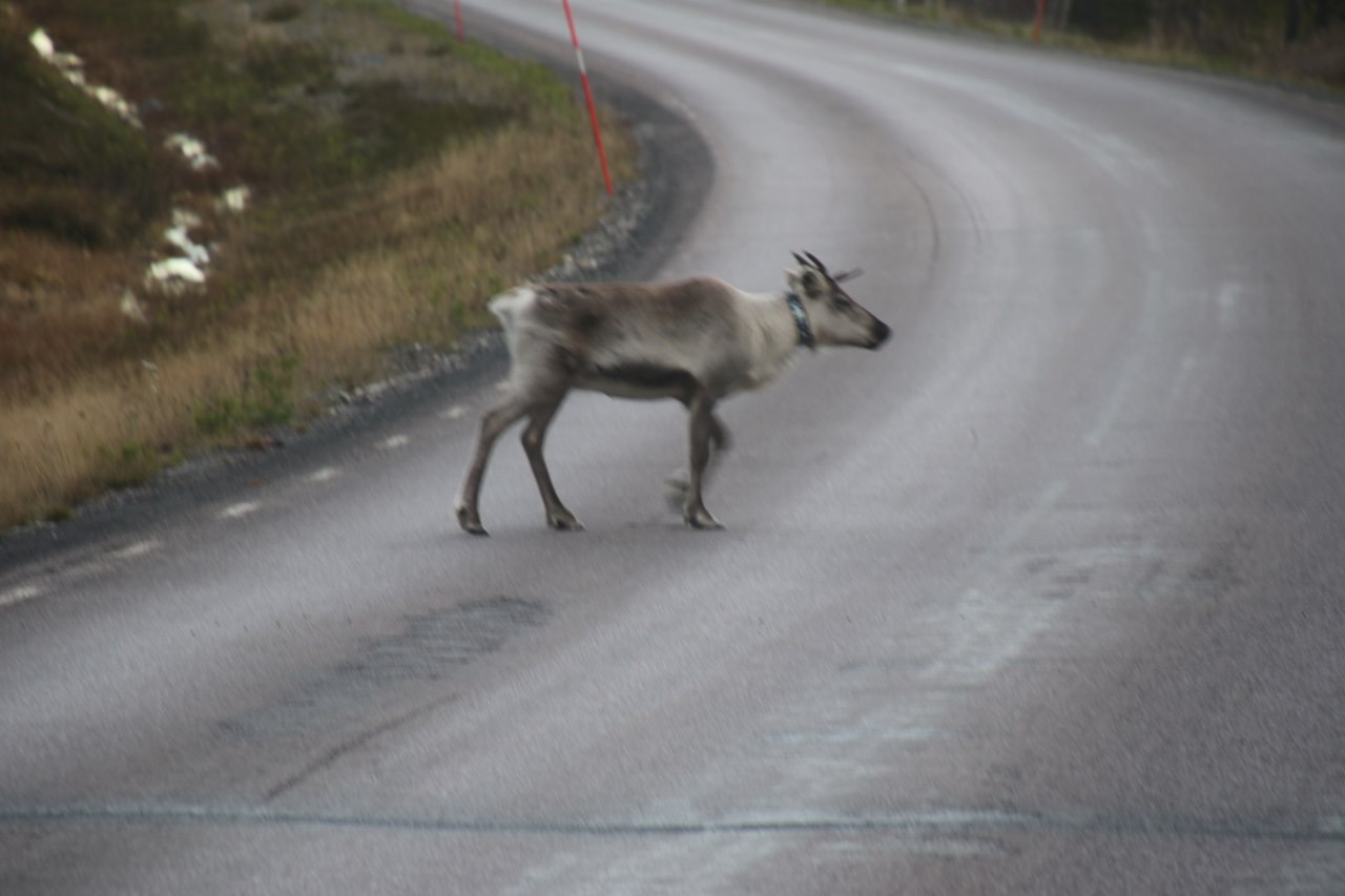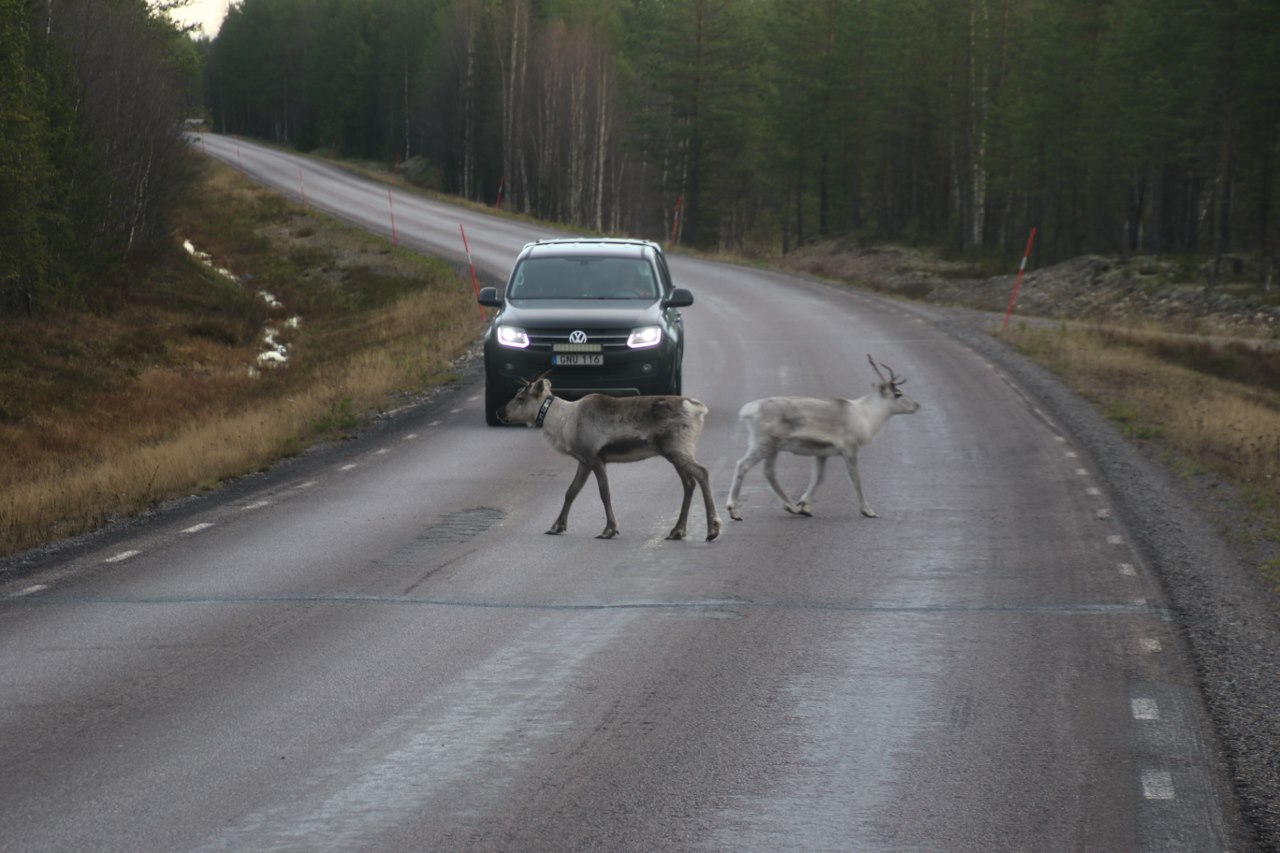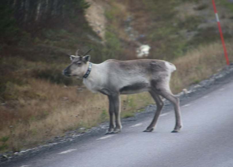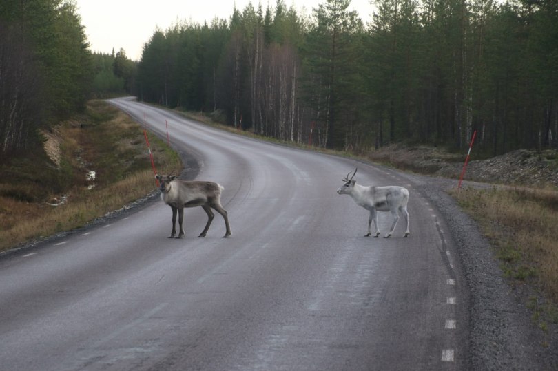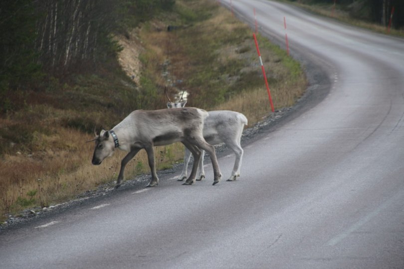 The open road mean the wildlife can walk right across the road – and up here the main wildlife or actually livestock is the cute reindeers. And occasionally the reindeer will walk right across the inland roads in Sweden expecting the cars to give way when they wonder around on the street.