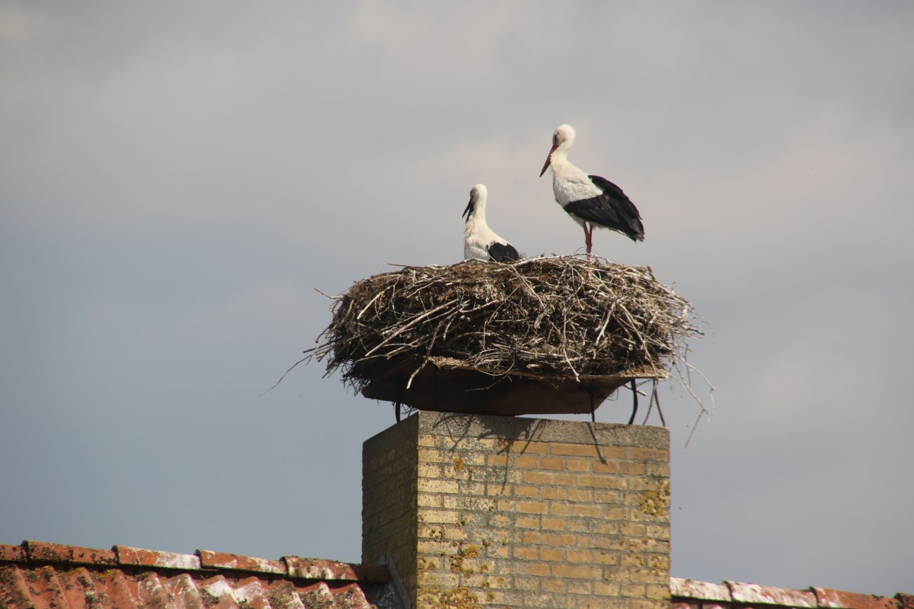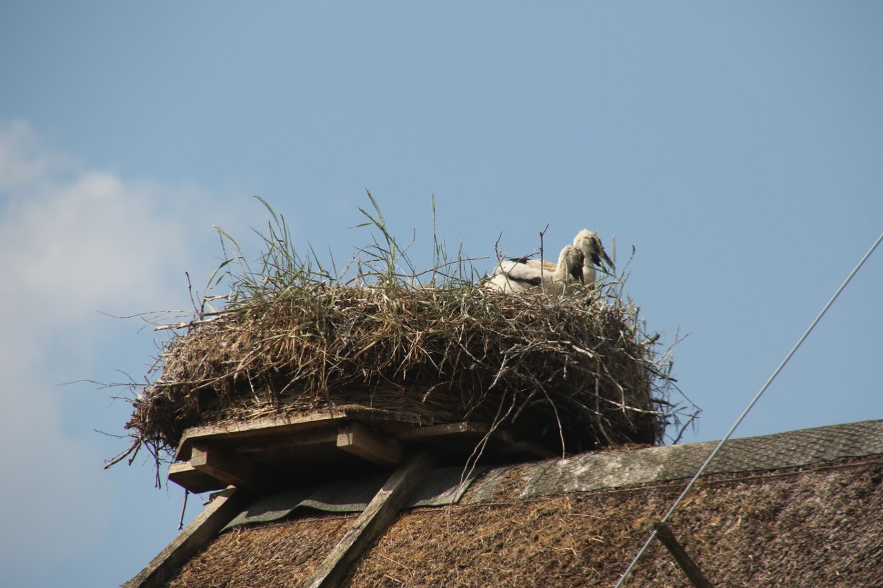 The village is located in a good area for the stork with many areas with a bit of water making a good living condition for frogs and other small animals which serves as food for the stork. So the storks have made the thatched roof houses their summer home.