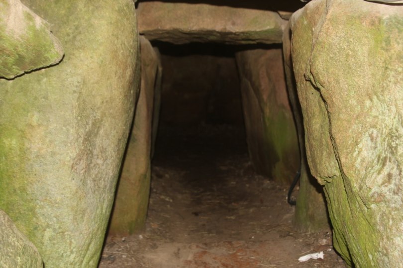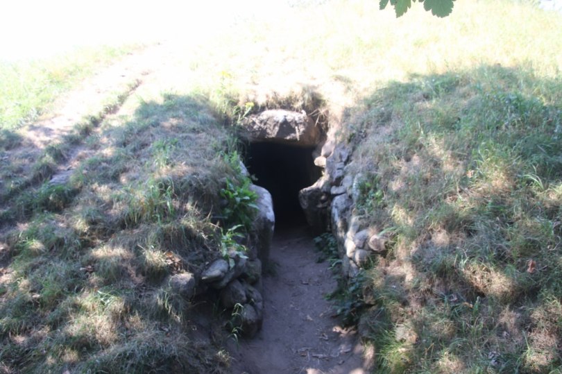 The one we are visiting is actually a double grave with two entrances to two different grave chambers under the grass turf hill. The entrance to the grave is narrow and very low so every adult will have to crawl and for large size Danes it is really tight and dark to go in and explore so we didn’t actually go inside to the chamber and only stayed at the outside and looked at the entrance path.