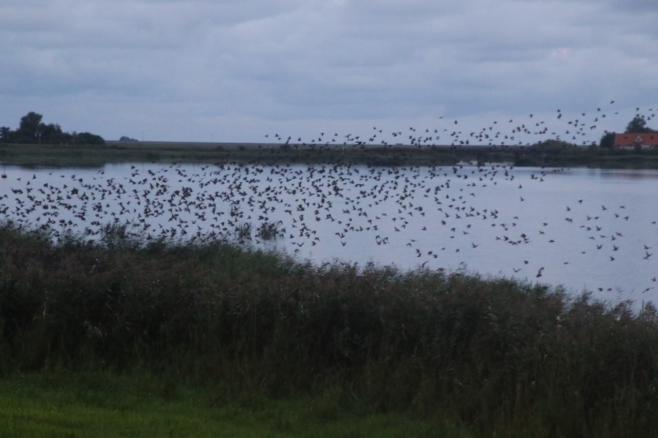 The birds are actually at the same side of the water as us. It is a bit of a surprise since we saw them go to bed across the water last night. I guess the starlings must have decided to move after we left and got to the other side of the lake.