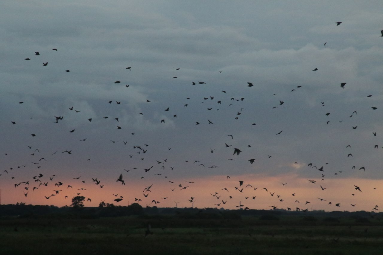 The starlings are really noisy when the wake up. They start singing in the morning before they get ready to fly out and eat all day. After a bit of singing some of the birds leave in a large flock – it is pretty impressive to see the many birds fly away in the morning.