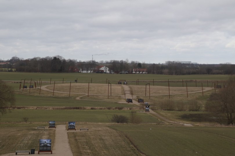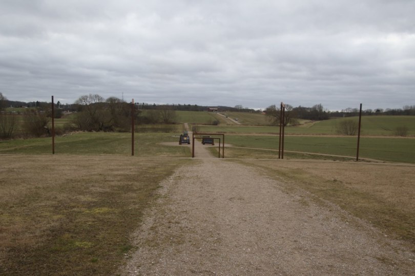 We go and explore the area. Walking to the fortress you pass a series of large posters. These posters tell about different military strongpoints which have been built across Denmark through the history of Denmark. you work your way back in time starting with the story of Stevns Fortet which were one of two large fortress in Denmark during the cold war which were built to try and keep the Soviet Fleet blocked inside the Baltic Sea and prevent them from reaching the Atlantic in case of a conflict. Fortunately the fortress was never used. The story of the defensive strong point continues backwards with the story of the fortifications around Copenhagen finally you come back to the Viking era when the ring fortress was built.