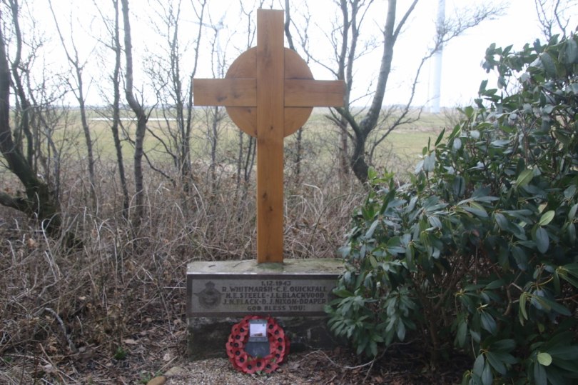 The crew died on a field a little outside Hemmet and their remains were scattered around the area. What has been found of the remains has been transferred to a memorial cemetery in Esbjerg for allied soldiers. The crash site itself has been turned into a small memorial – the crater created by the crash has been preserved as a small pond and there is trees growing around it. All in all this is a fairly peaceful looking place on the field. There was nobody when we went there but there are a few benches out here so maybe somebody goes here for a picnic during the summer. It is fairly easy to find the place since there is a sign Flyvergraven from the main highway to here you just have to follow a small road which turns into a dirt road after a while to reach the memorial.
