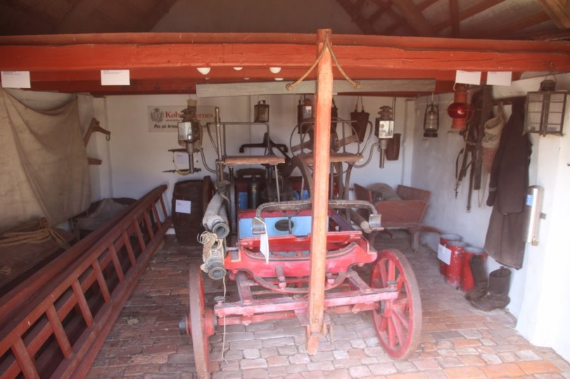When I say a small fire station – I really mean a small fire station. The fire station is called Sprøjtehuset which means house of the sprayer. The firetruck was spaying the fire – hence the name. The house of the truck is tiny just big enough to house the small truck which were drawn by horses in case of fire.