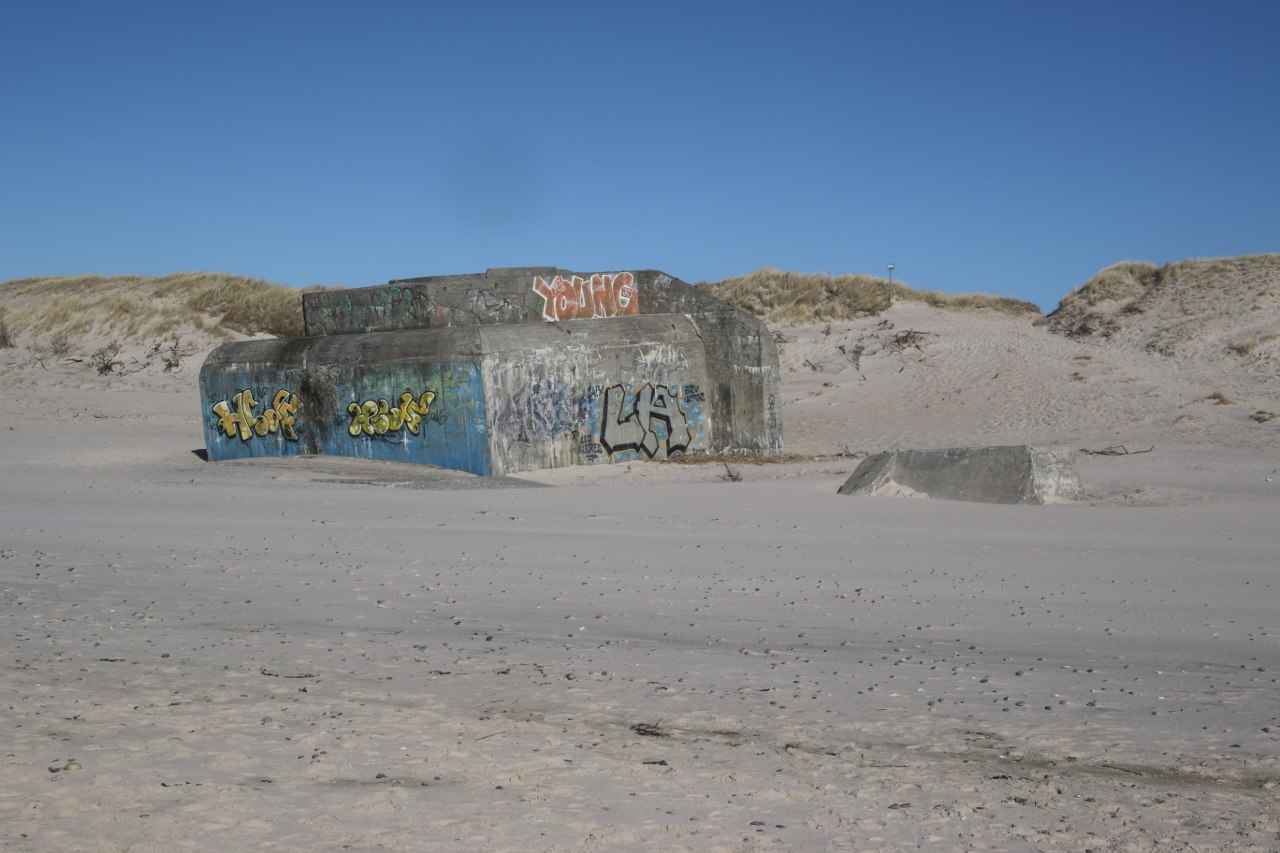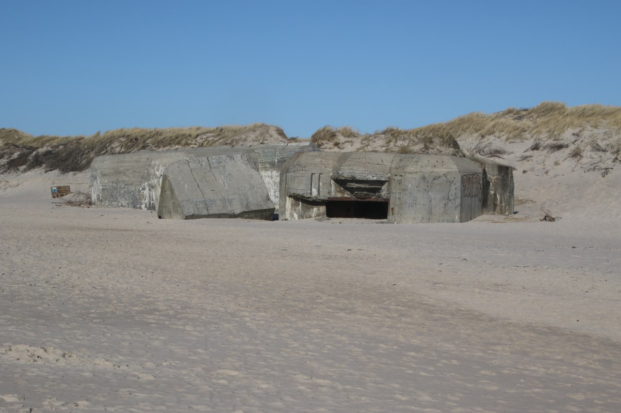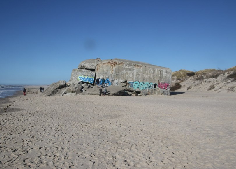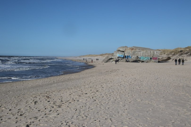 Today you can walk freely around the many bunkers along the sandy beach – and outside the summer season the bunkers is probably the main attraction on the beach since nobody with a sane mind will attempt the freezing cold waters of the North Sea.