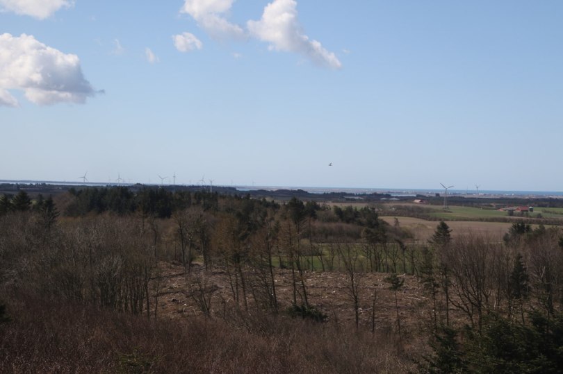 From the top of the hill you just have to take the short hike to a view tower at the top of the hill and then you can walk up the tower – which is free – to enjoy the view of the area surrounding the hill. You can see a lot of Thy from the top of the island you particularly have a good view to the easily recognizable area called Agger Tange which is a narrow stretch of land with water on both side of the landmass.
