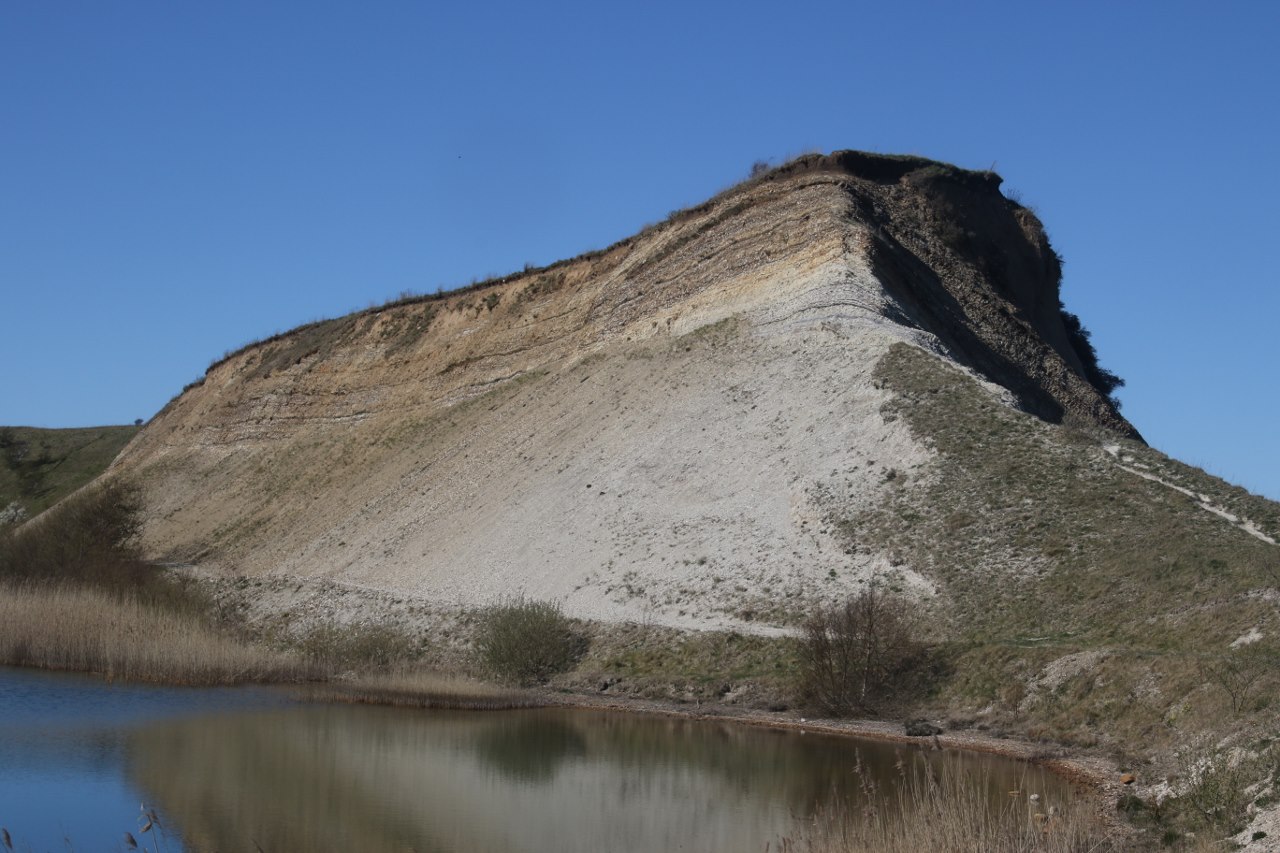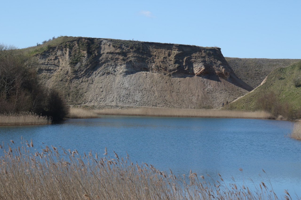 The clay formation here at Ejerslev is far from the tallest formation – but the way the clay is surrounding the small lagoon give a special view which is pretty to watch.