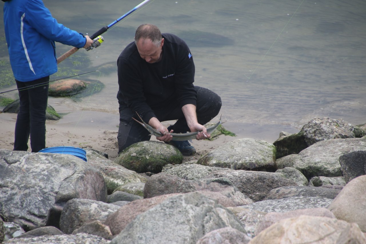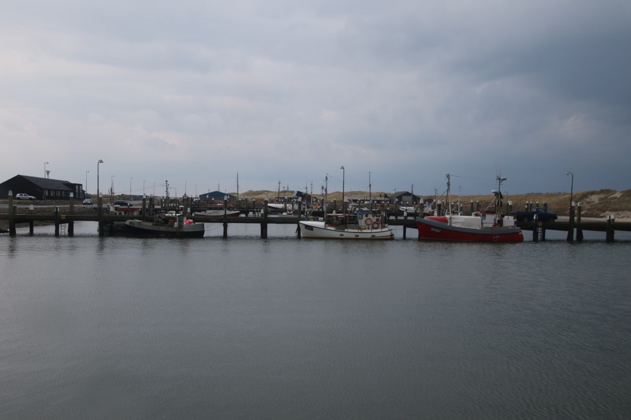 One of the large fishing towns along the west coast of Jutland is found at Thorsminde. The small town has one of the largest collections of fishing boats in Denmark. The town is located at the only connection between Nissum Fjord and the North Sea. The connection between the two bodies of water is regulated by a lock. And right at the lock there is some strong current which seems to be very attractive for fish – and the locals know this is the place to go and catch the dinner of the day – and a group of men and boys stand here catching many fish in the strong current.