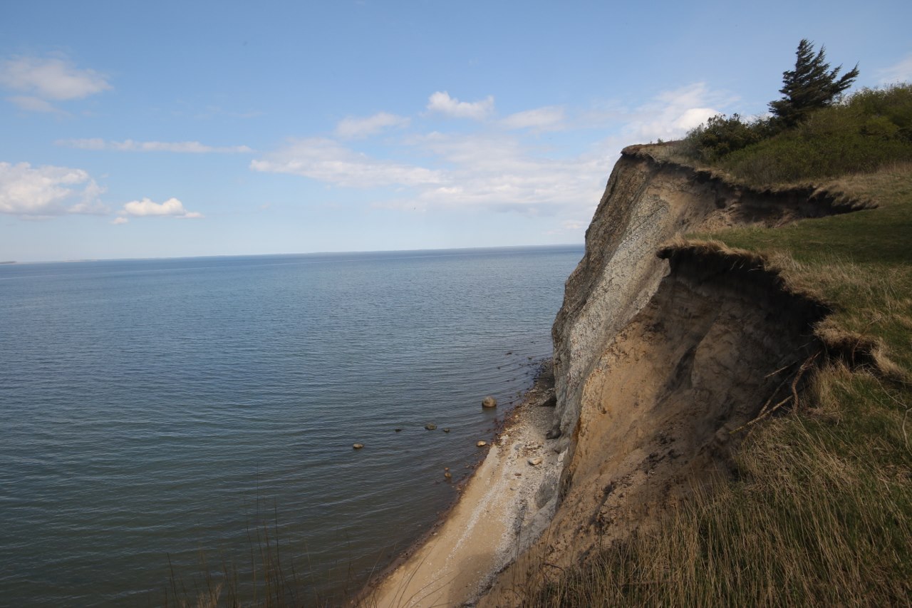 The walk from the brew house to the cliffs is fairly easy. You walk along a good gravel trail along a little clay canyon until you reach the end of the road where you can see the cliffs. If you walk to the end of the road you can enjoy a little view and then go back – you haven’t made it to the highest point yet. When you walk back you walk a little uphill but it is an easy trek and you will be rewarded with a great view of the clay cliff. You can look across the water and actually see the cliff of Feggesund in the distance from up here.